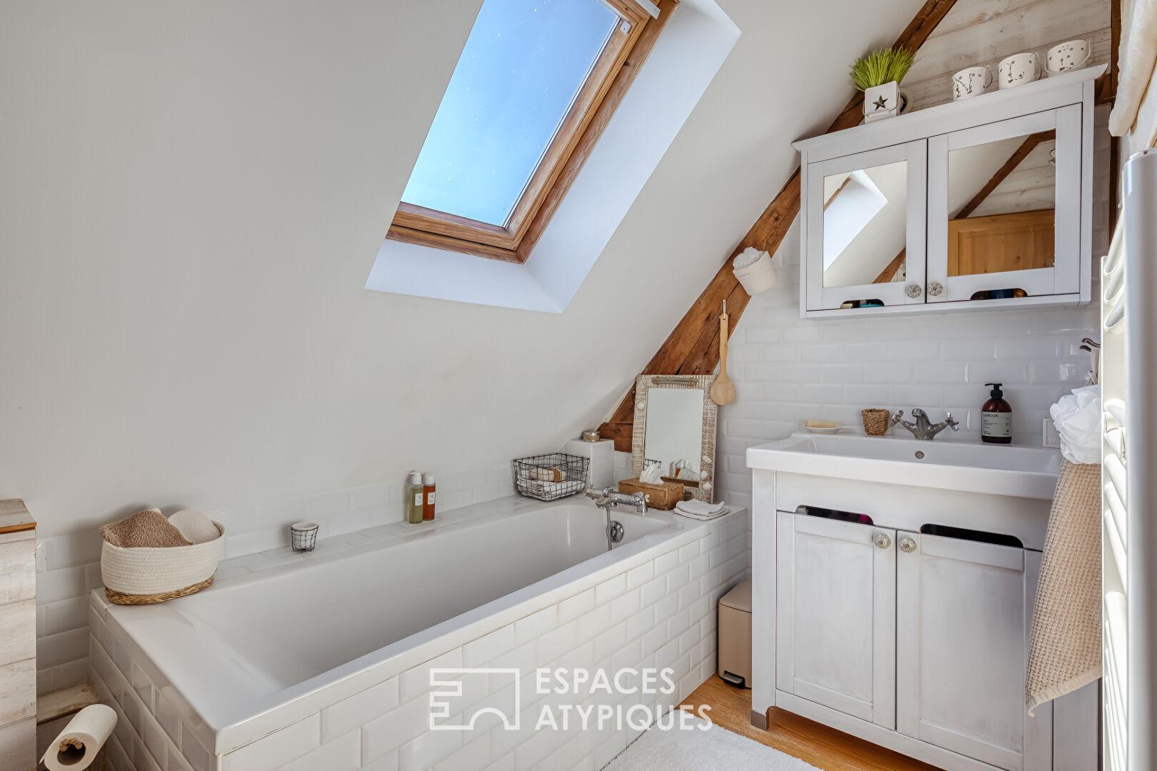 À seulement trente minutes de Rouen et quarante minutes de Honfleur, cette maison de caractère s’inscrit dans un cadre villageois paisible où l’authenticité du patrimoine dialogue harmonieusement avec une rénovation soignée. Pensée aujourd’hui comme une maison familiale, elle propose quatre chambres, deux salles d’eau et des volumes généreux répartis sur trois niveaux.