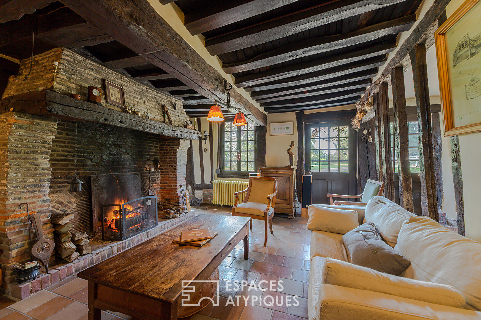 Edifiée sur 5000 m2 de terrain, cette ancienne bâtisse des années 1800 en torchis et colombages, empreinte d’un historique centenaire, a bénéficié d’une extension dans les années 50 et comptabilise 250m2.