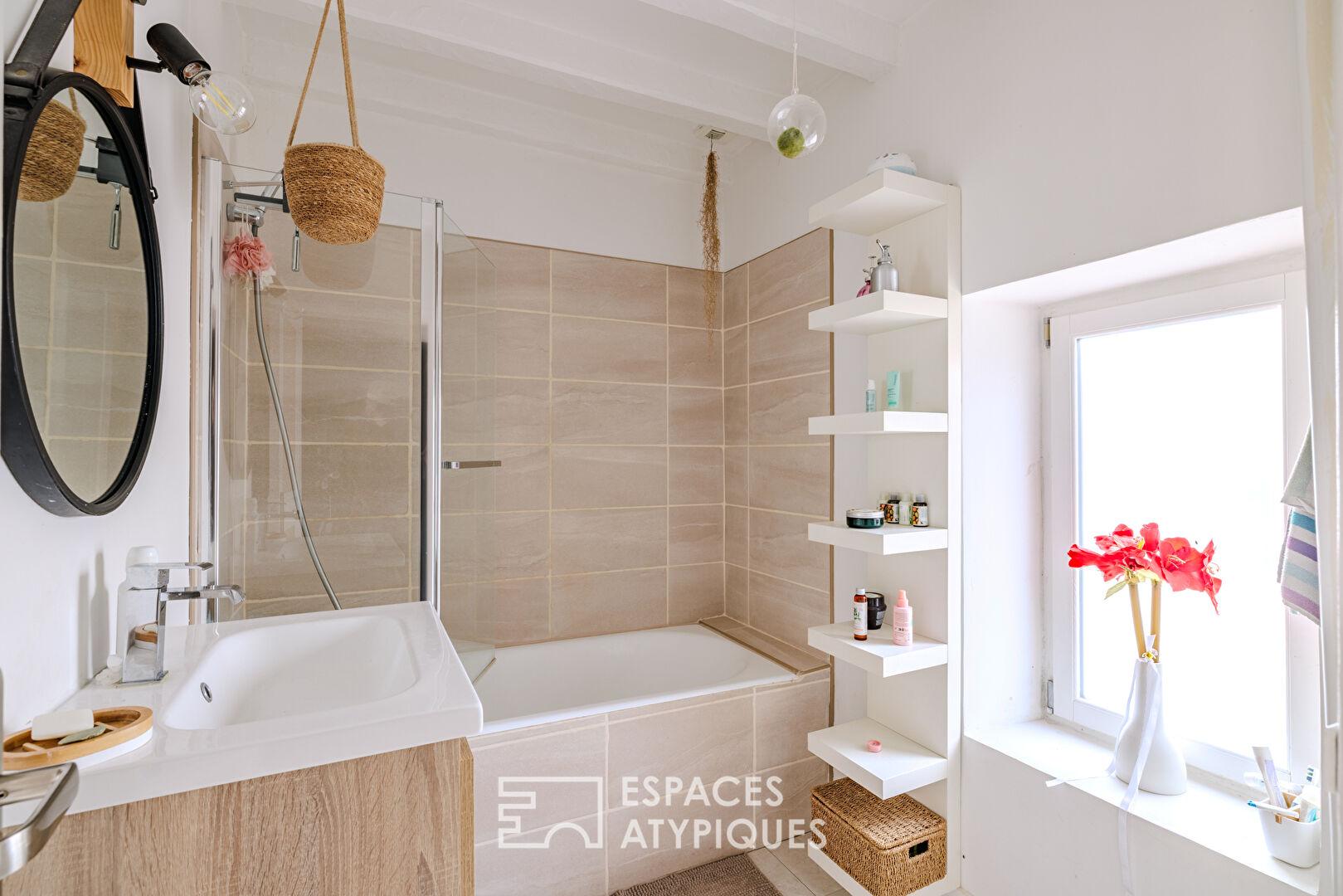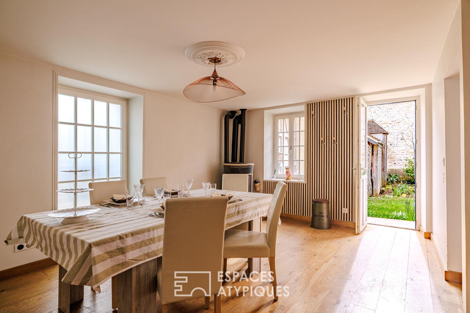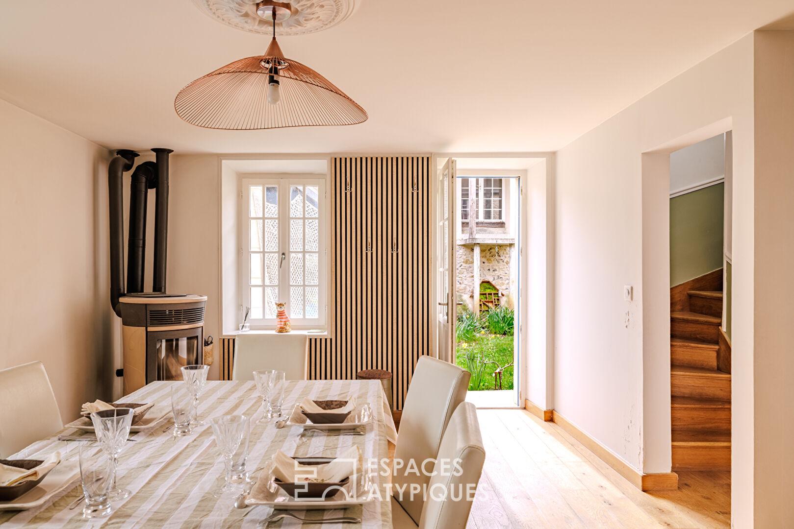 L’extérieur se dévoile comme un cocon secret : un jardinet à l’esprit cour, sans aucun vis-à-vis, invite à la quiétude. Une dépendance à aménager complète l’ensemble, idéale pour une activité de gîte ou une maison d’amis (projet de mezzanine et sanitaires déjà amorcé).