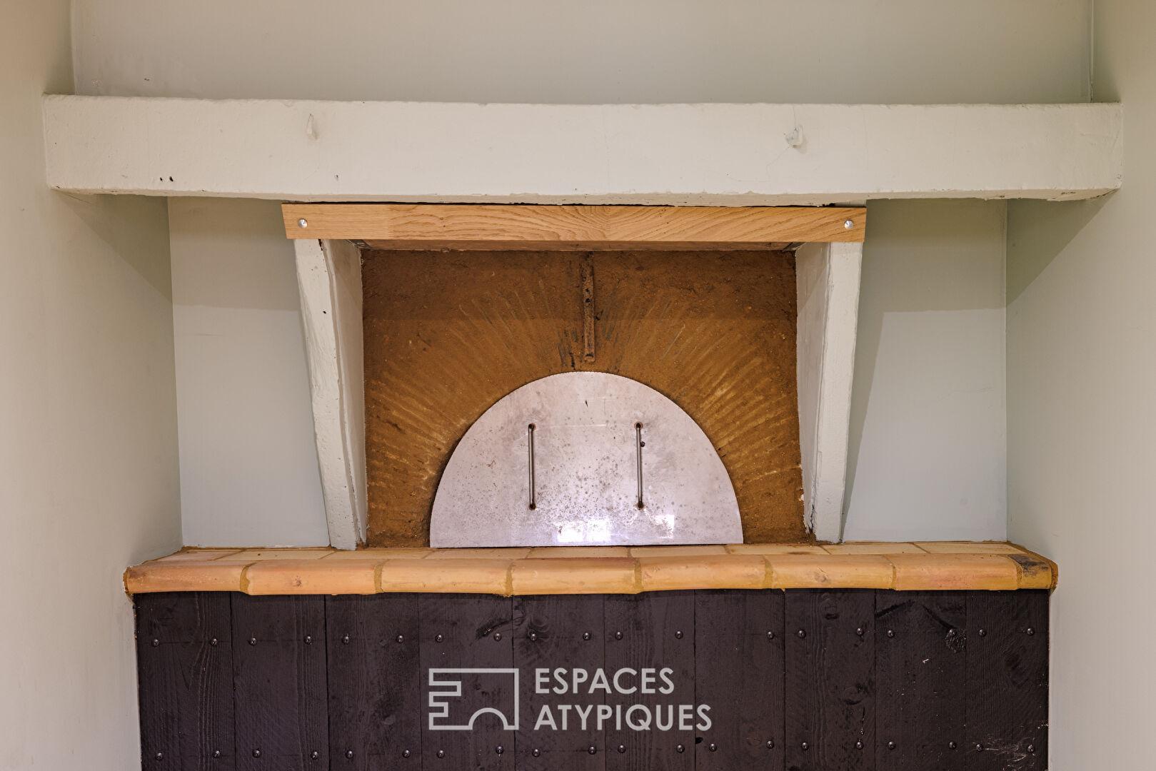 Le rez-de-chaussée révèle des volumes généreux : une cuisine dînatoire et une salle à manger chaleureuse mènent à un vaste séjour avec cheminée. Une trappe vitrée y dévoile une cave enterrée, véritable curiosité visuelle. L’espace de vie se prolonge vers un salon de détente abritant un authentique four à pain préservé ainsi que des WC.