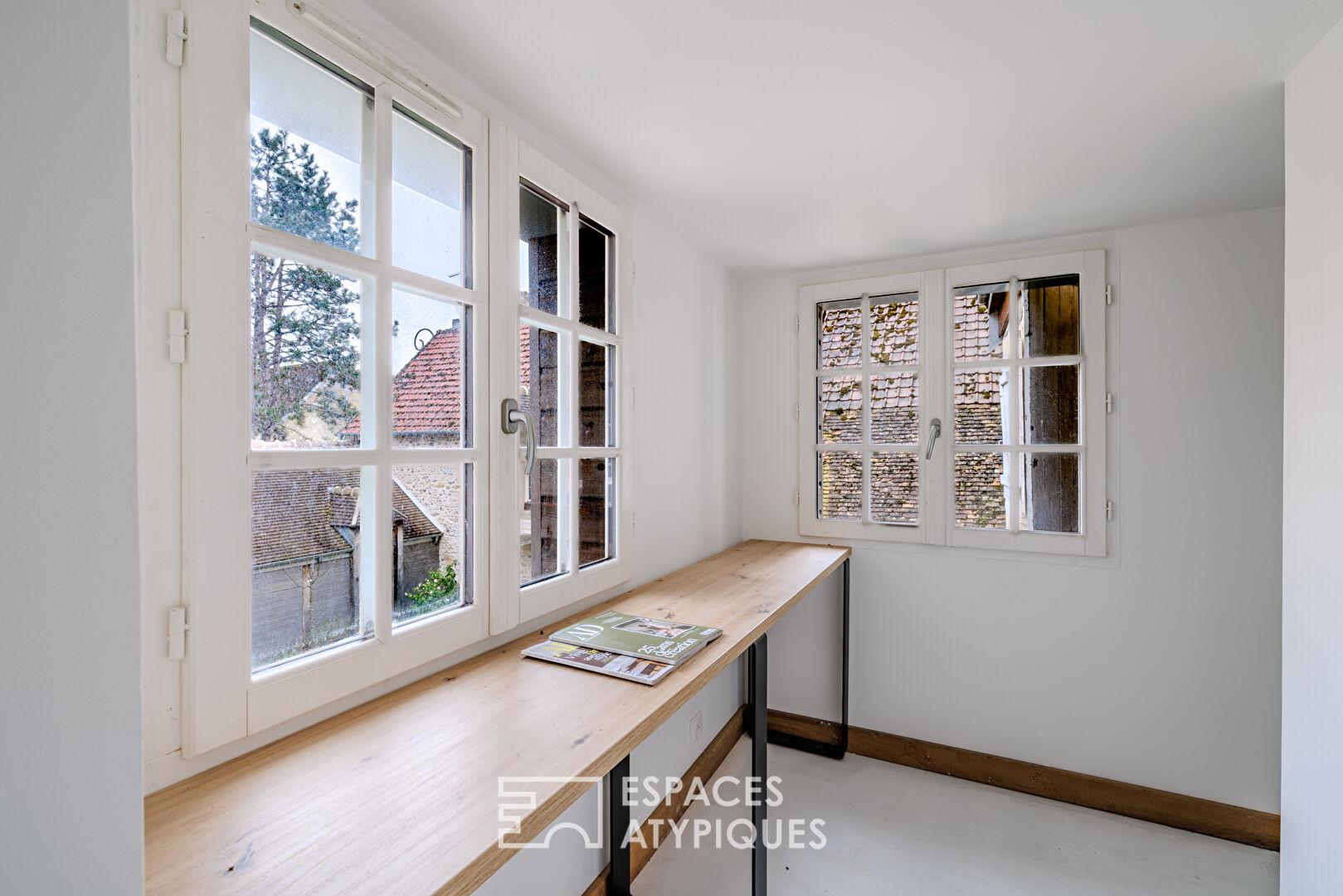 À la lisière de la Normandie et aux portes de Giverny, le charmant village de Fourges abrite une propriété singulière, témoin d’une histoire riche. Cet ancien corps de ferme en pierre du XIXe siècle, ayant autrefois accueilli un pensionnat, déploie aujourd’hui ses 268 m² habitables (345 m² au sol) au sein d’un environnement préservé, célèbre pour son moulin classé.