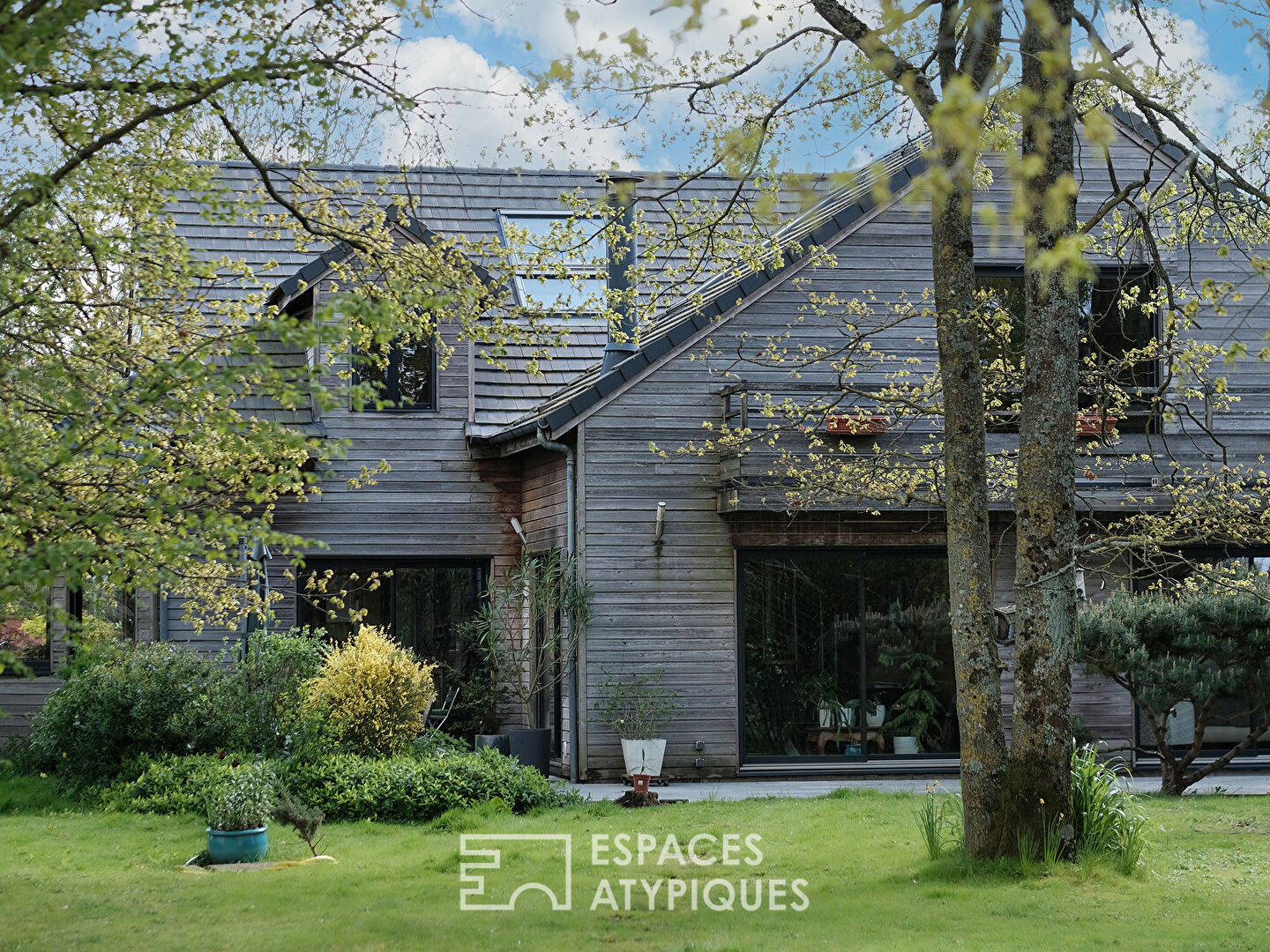 Située sur la petite commune rurale de Vieuvicq à 5km d’Illiers-Combray où Marcel Proust passait ses vacances chez sa tante Léonie et à 1h15 de Paris, cette maison contemporaine développe une surface de 276 m2 sur un terrain boisé de 1695 m2.