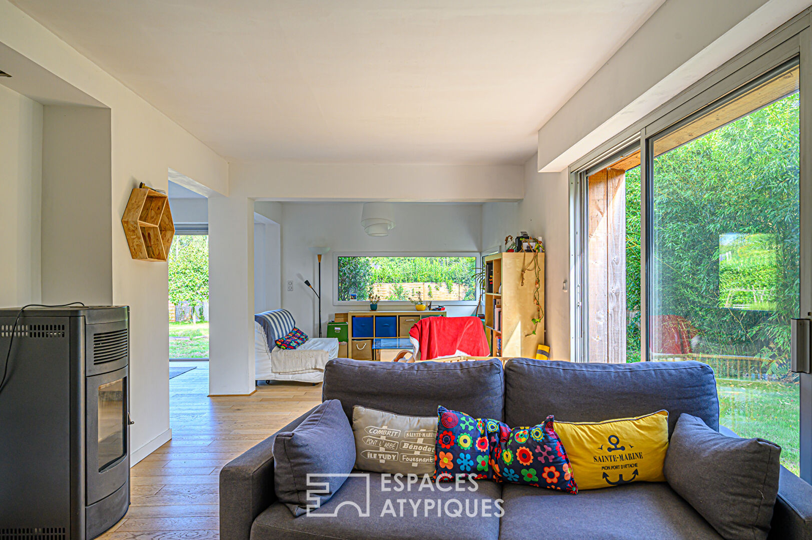 Edifiée en 1983 sur un terrain de 830 m², elle s’est parée d’une jolie extension en bois en 2018, qui lui confère une originalité architecturale.