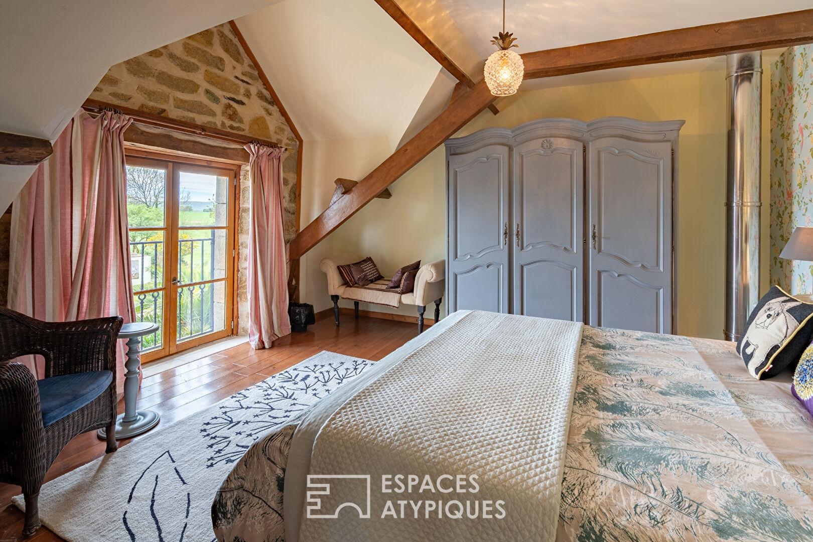Une demeure principale aux volumes généreux, conjuguant confort contemporain et charme de l’ancien .Elle se compose de 10 pièces sur 287 m2, réparties sur trois niveaux, accueillant au rez de chaussée, un salon doté d’une magistrale cheminée en pierre avec poêle à bois, , une salle à manger avec cheminée et poele à bois, et d’une cuisine équipée avec ilot central ouverte sur la terrasse et le jardin. Au premier étage un vaste palier dessert deux grandes chambres , chacune équipée de sa propre salle de bains avec wc Le second étage dispose de trois chambres ,toutes équipée de salle d’eau individuelles avec toilettes.