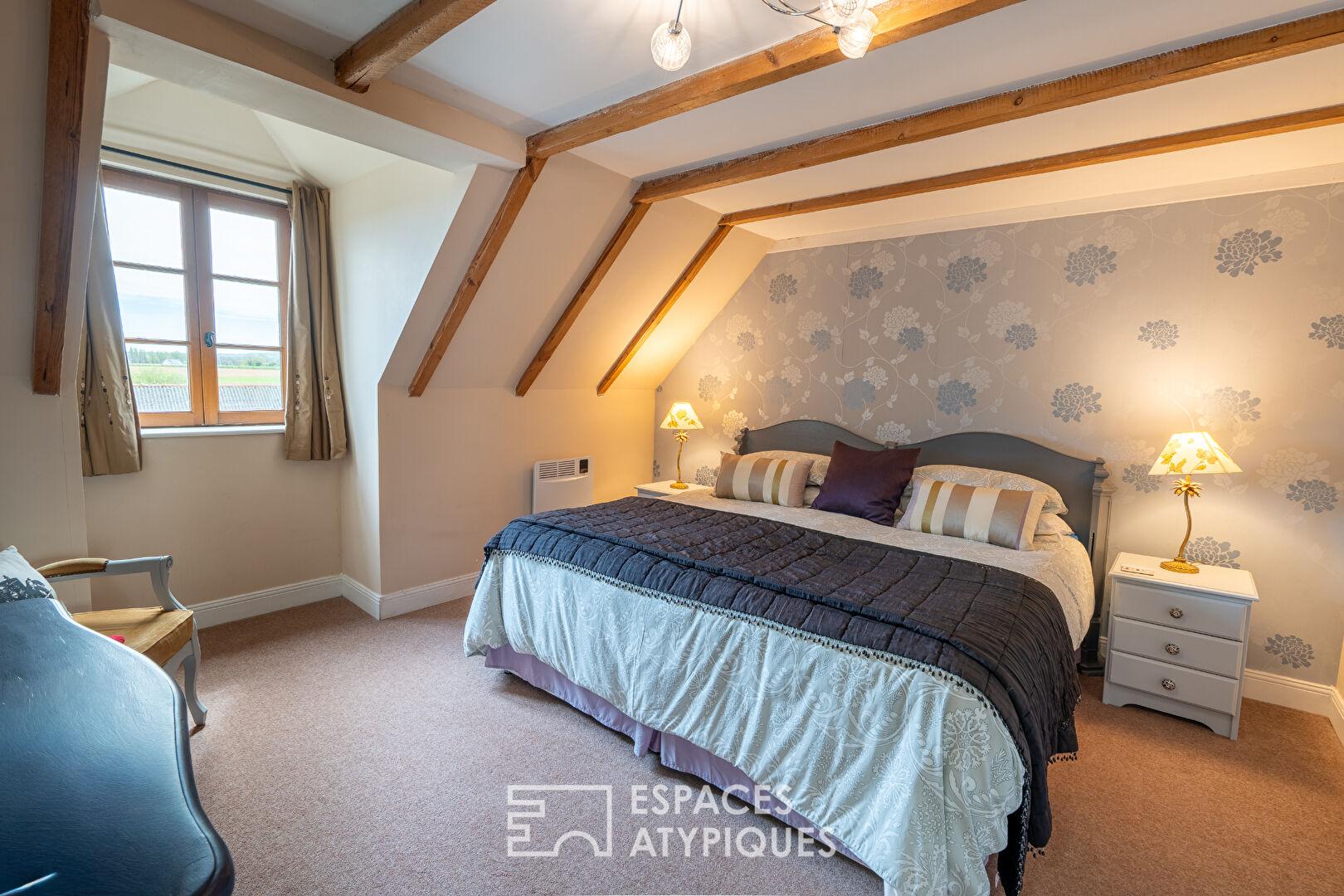 Le second gîte, développant 124 m² (115 m² loi Carrez), se distingue par ses volumes généreux et son agencement harmonieux. Le rez-de-chaussée propose une très belle pièce de réception dotée d’un poele à bois, avec cuisine ouverte, une salle d’eau avec toilettes, ainsi que de nombreux espaces de rangement intégrés. À l’étage, trois chambres élégantes et une salle de bains avec WC viennent parfaire cet ensemble, pensé pour un confort absolu.