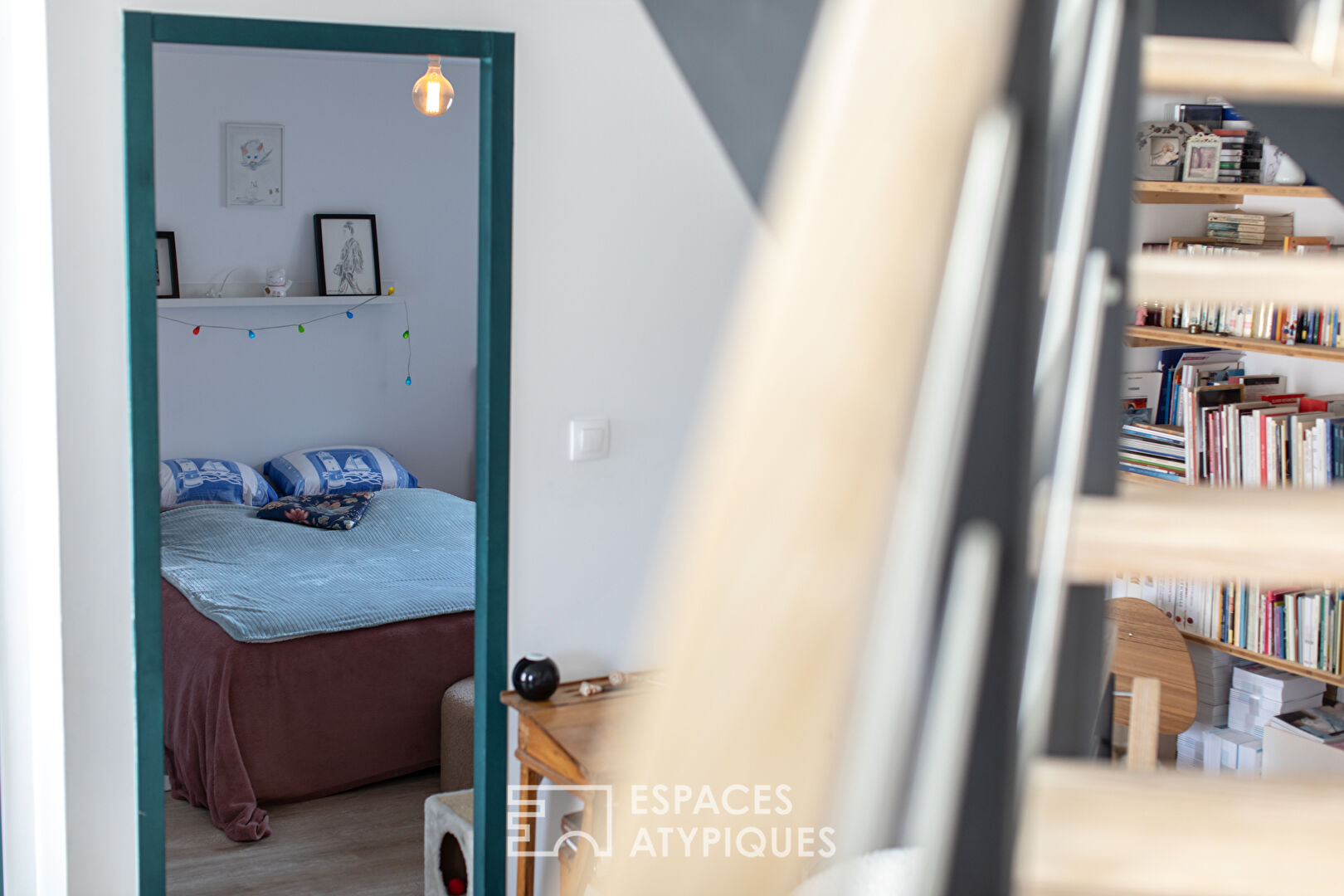 Entièrement repensée et modernisée dans un esprit d’appartement-triplex, la maison est rythmée par un bel escalier en bois et métal et elle multiplie les ouvertures permettant ainsi à la lumière d’exprimer toutes ses nuances.