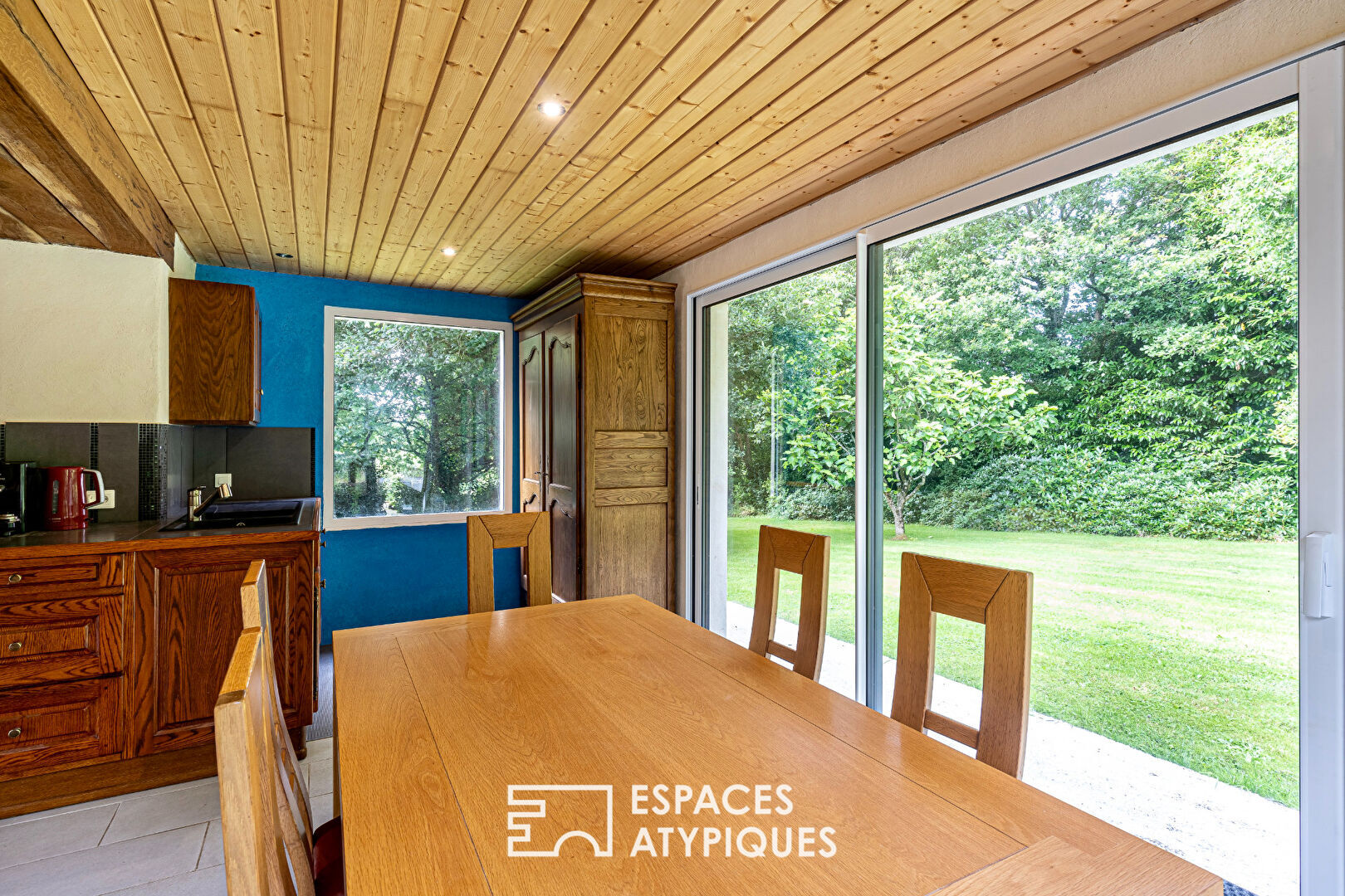 Lovée au coeur d’une nature luxuriante, à l’abri des regards, à proximité de la ville de Morlaix, alliant l’harmonie d’une vie à la campagne et l’accès aisé aux nécessités du quotidien, cette propriété saura ravir les amoureux de nature enquête de quiétude. Pour les amoureux de vieilles pierres et curieux d’espace et de verdure, cette propriété séduit par son charme d’antan et étonne par son caractère préservé. Le jardin bucolique, avec son étang, est tout aussi remarquable tant par la diversité des arbres qu’il met en scène que par son côté préservé, avec plusieurs espaces dédiés au repos et à la détente.En toute discrétion, cet ancien corps de ferme, érigé sur une parcelle arborée d’un hectare, est composé d’un ancien manoir du XVI siècle, d’une longère, d’une dépendance et d’un vaste hangar.