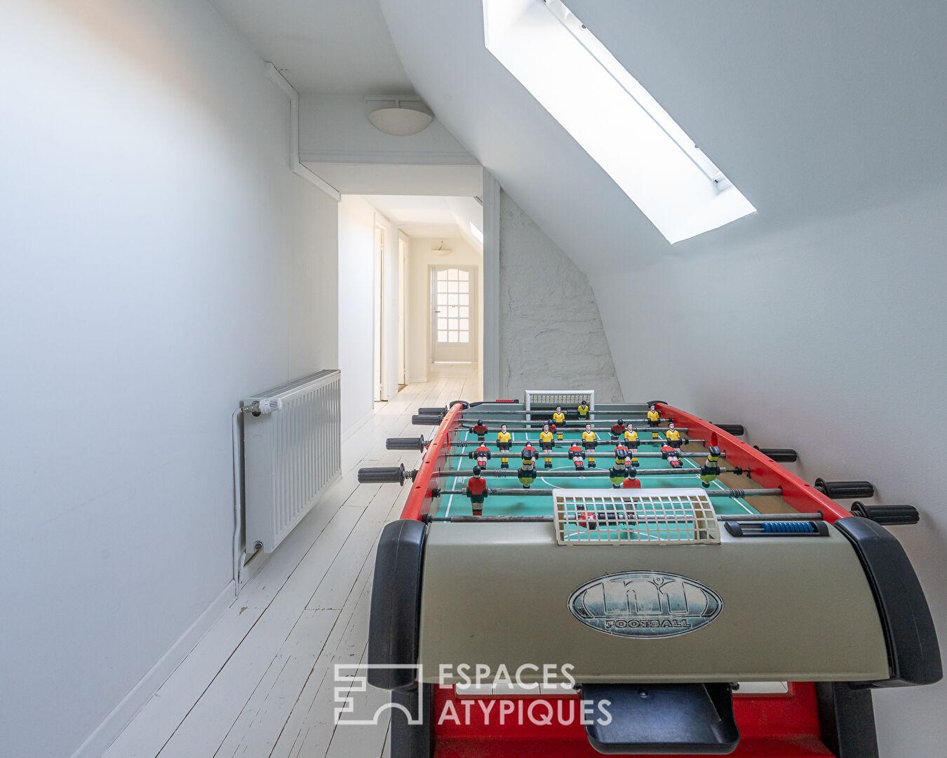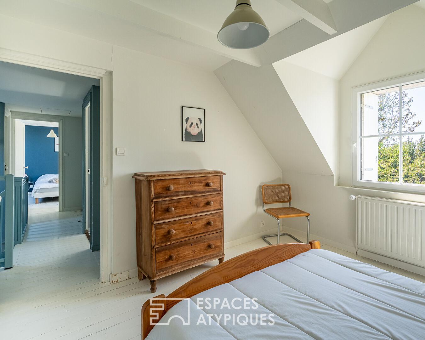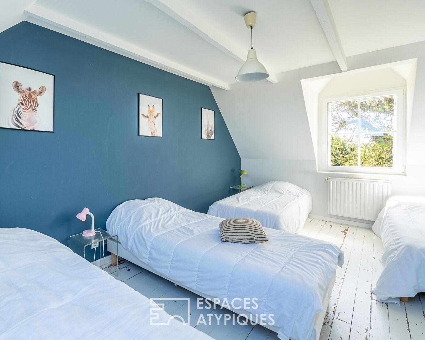 À l’étage, les espaces nuit prolongent cette sensation de clarté et de douceur. Les chambres, lumineuses et bien réparties, s’adaptent à une vie de famille comme à l’accueil d’invités, avec en complément un espace dortoir à l’esprit maison de vacances.Deux pièces d’eau complètent ce niveau : une salle d’eau et une salle de bains au charme rétro, ornée de carreaux de ciment.