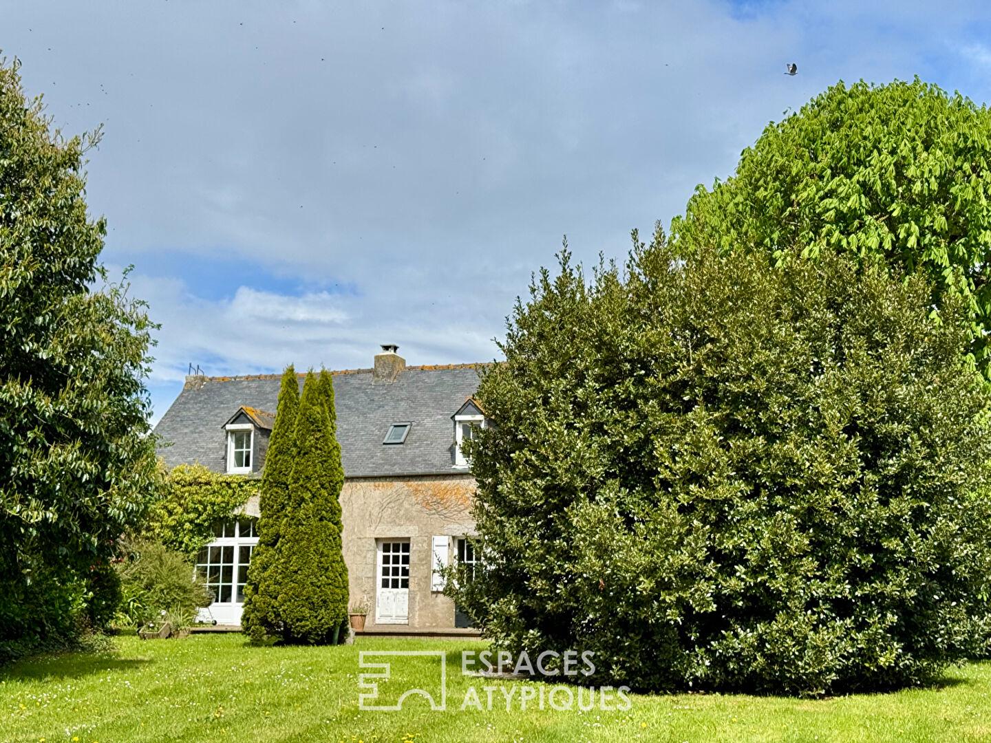 Lovée au bout d’une impasse paisible de Carantec, cette longère en pierre incarne avec justesse le charme des bâtisses de caractère, dans un environnement préservé à seulement 1,4 km de la mer. Entre jardin arboré et échappées marines, elle offre un art de vivre lumineux, à l’équilibre entre authenticité et douceur du littoral.