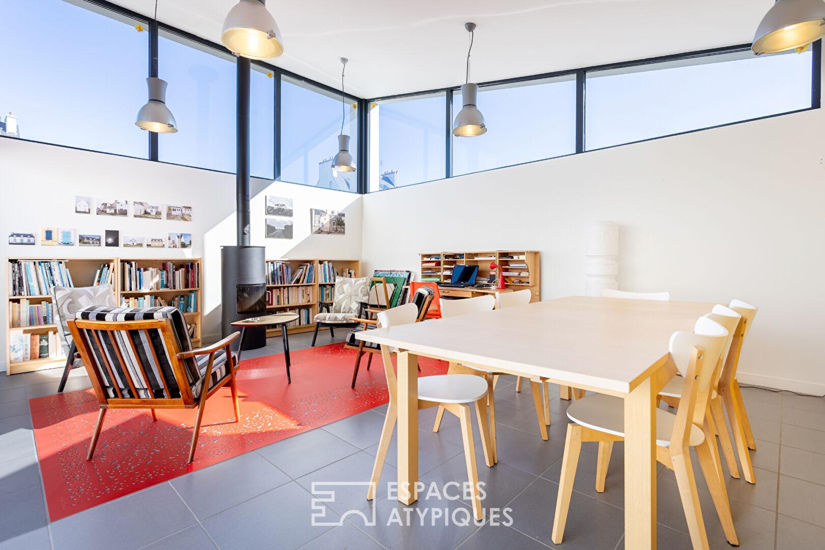 Véritable prolongement de la maison, une spacieuse pièce indépendante baignée de lumière, ouverte sur le patio, accueille un espace vie idéal pour un atelier d’artiste, un salon de lecture ou la réception d’invités. Dotée de nombreux rangements et d’un poêle à bois, elle offre une ambiance chaleureuse et inspirante en toute saison.
