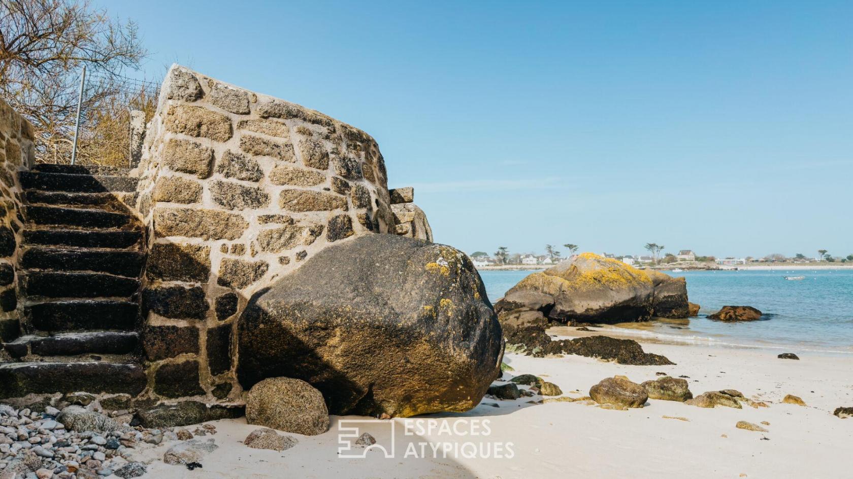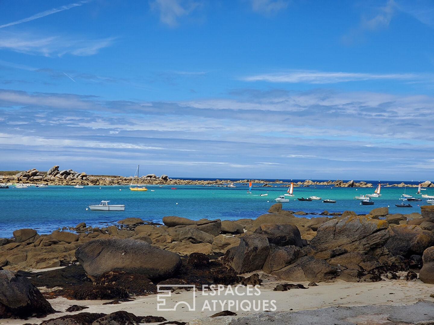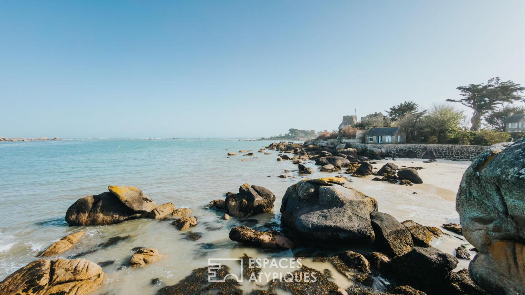 Perché en bordure de l’une des plus belles côtes bretonnes, ce site bénéficie d’une situation d’exception face à la mer, en surplomb de la plage du Garo et de plage des demoiselles, vaste étendue de sable fin bordée d’eaux claires et cristallines, emblématique de la Côte des Légendes. Ici, le littoral se déploie à perte de vue, offrant un cadre naturel rare, rythmé par les marées, la lumière changeante et la douceur de vivre balnéaire.