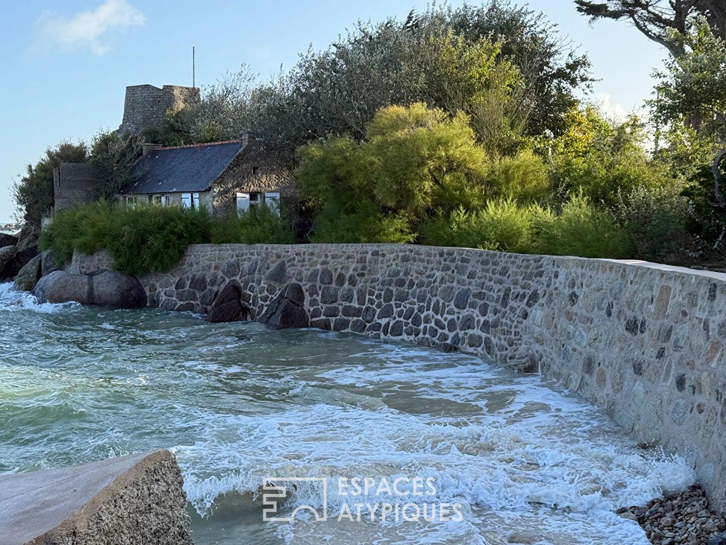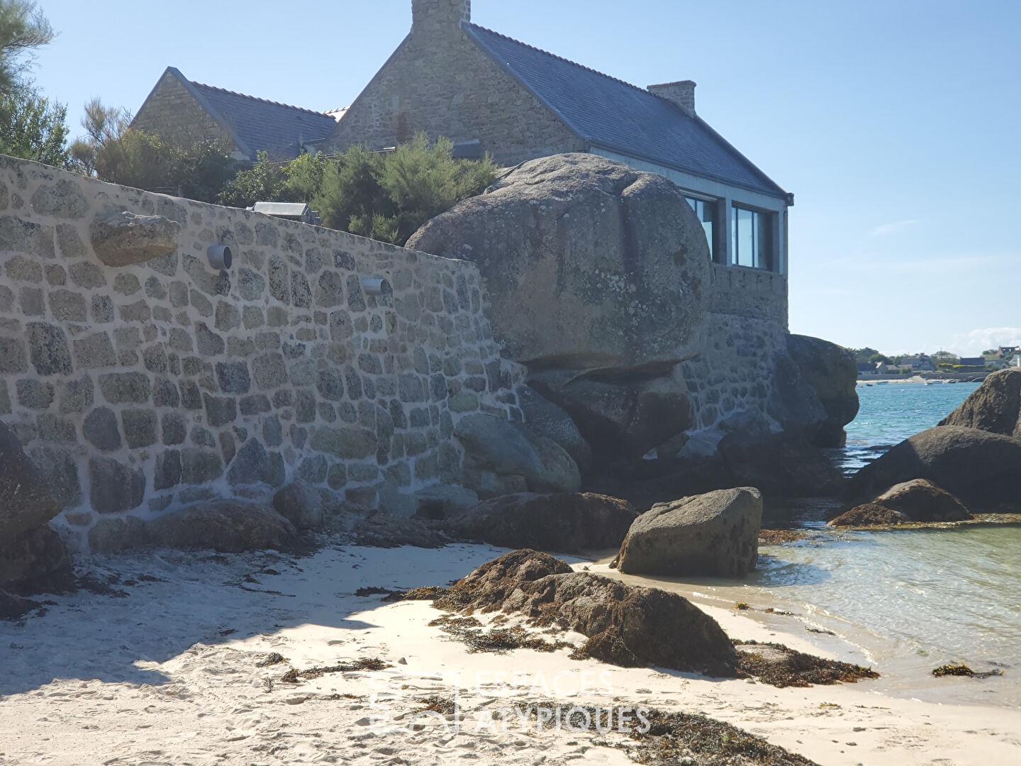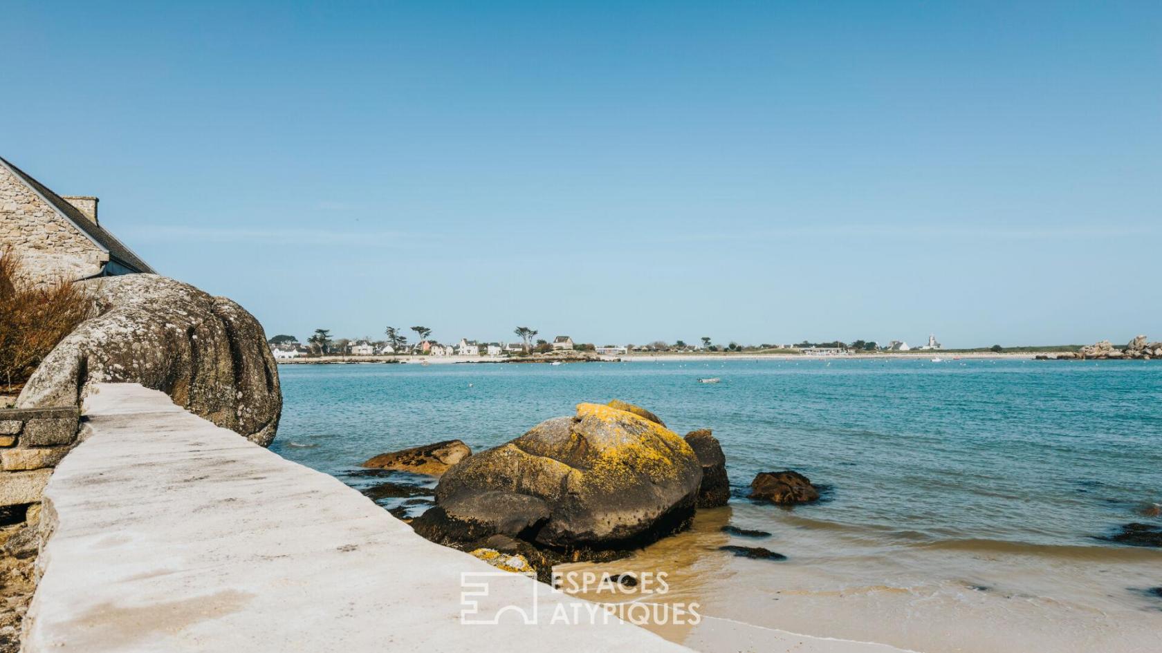 Perché en bordure de l’une des plus belles côtes bretonnes, ce site bénéficie d’une situation d’exception face à la mer, en surplomb de la plage du Garo et de plage des demoiselles, vaste étendue de sable fin bordée d’eaux claires et cristallines, emblématique de la Côte des Légendes. Ici, le littoral se déploie à perte de vue, offrant un cadre naturel rare, rythmé par les marées, la lumière changeante et la douceur de vivre balnéaire.
