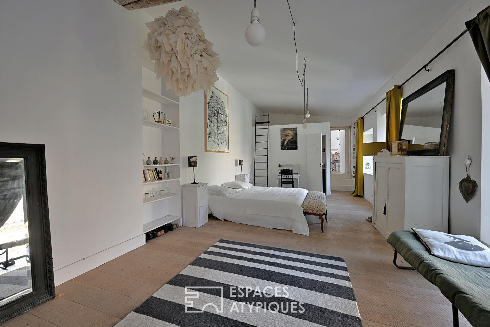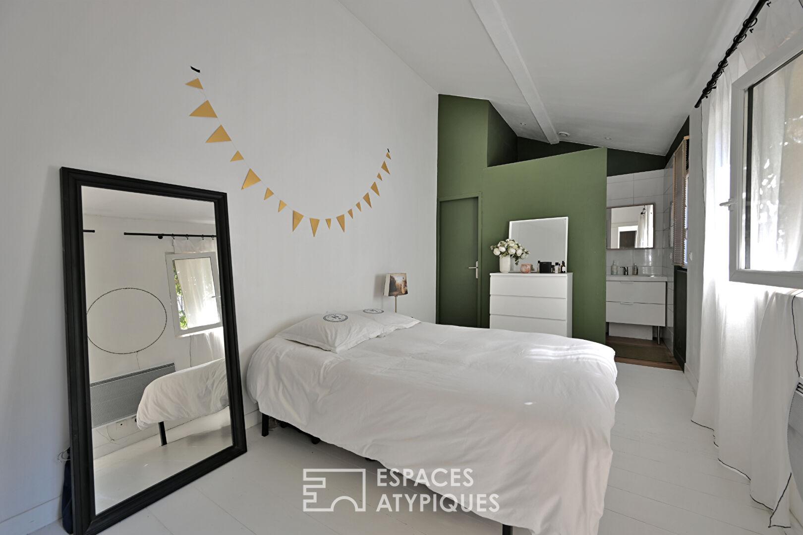 Véritable atout de ce bien, une superbe suite parentale de 32 m² avec salle d’eau dispose d’une entrée indépendante sur la cour, ouvrant la voie à de multiples usages : espace locatif, atelier ou cocon privé.