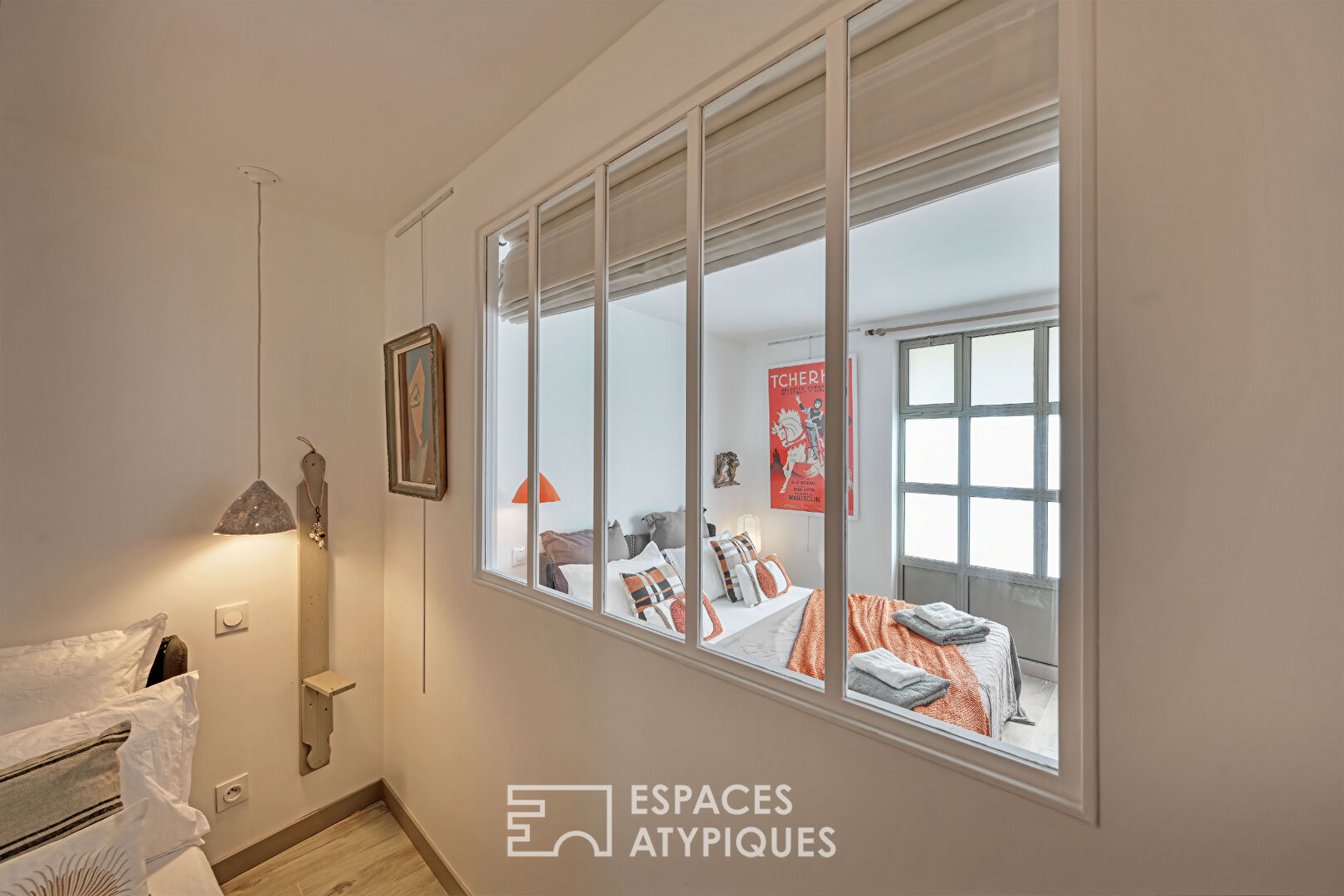 L’utilisation de verrières apporte beaucoup de lumière et de transparence à cet appartement.