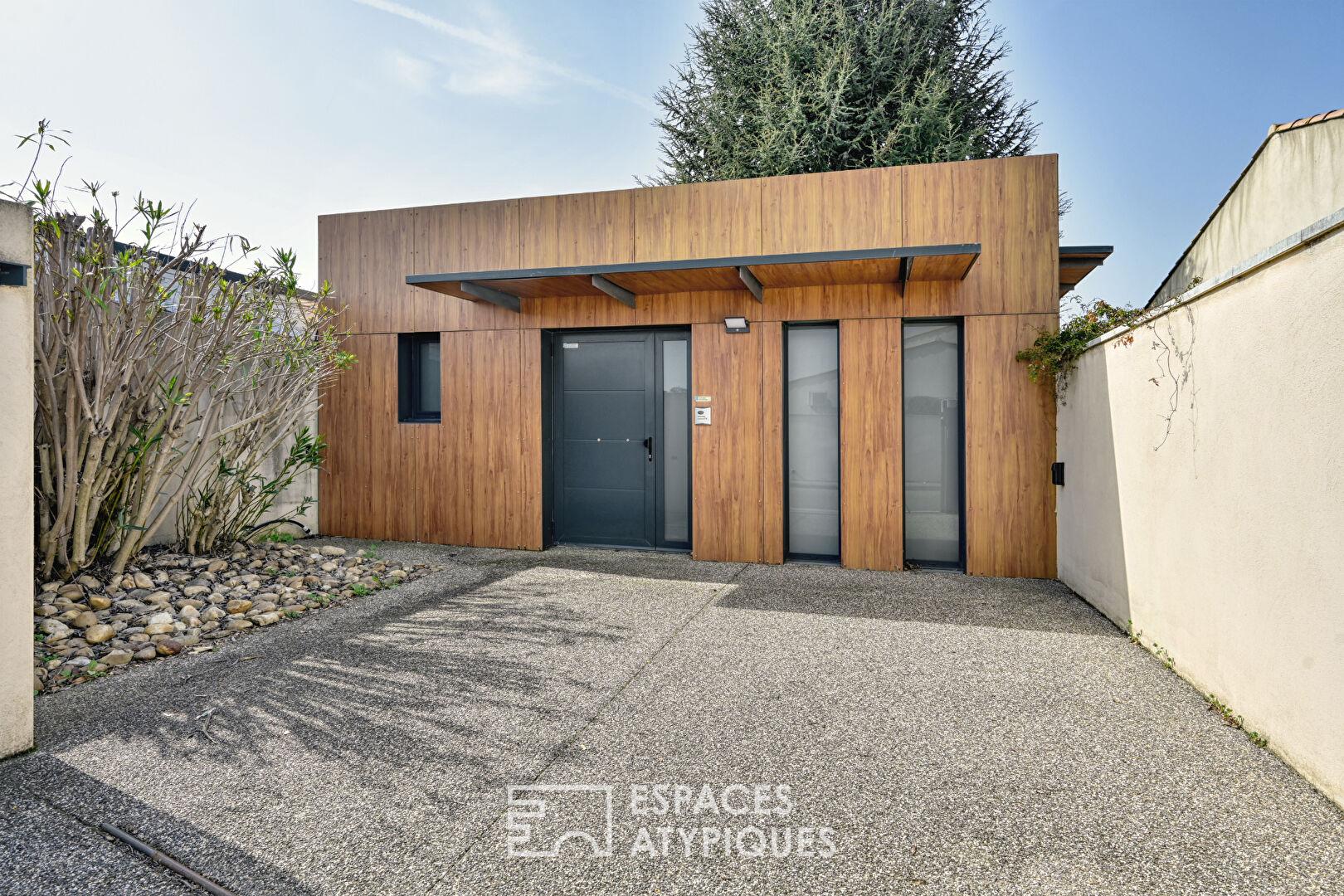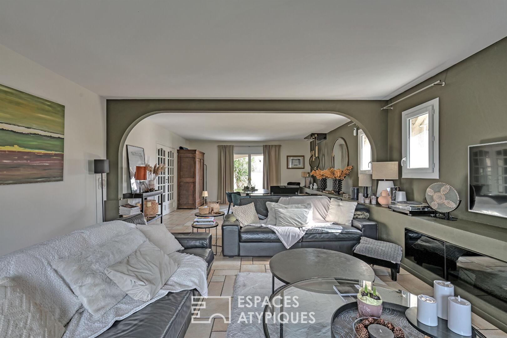 Véritable havre de paix, intime et à l’abri des regards, le bien développe 277 m² dont 227 m² pour la maison principale, 37 m² pour son cabinet libéral indépendant situé à côté de la maison, et 13 m² pour son studio niché au fond du jardin.
