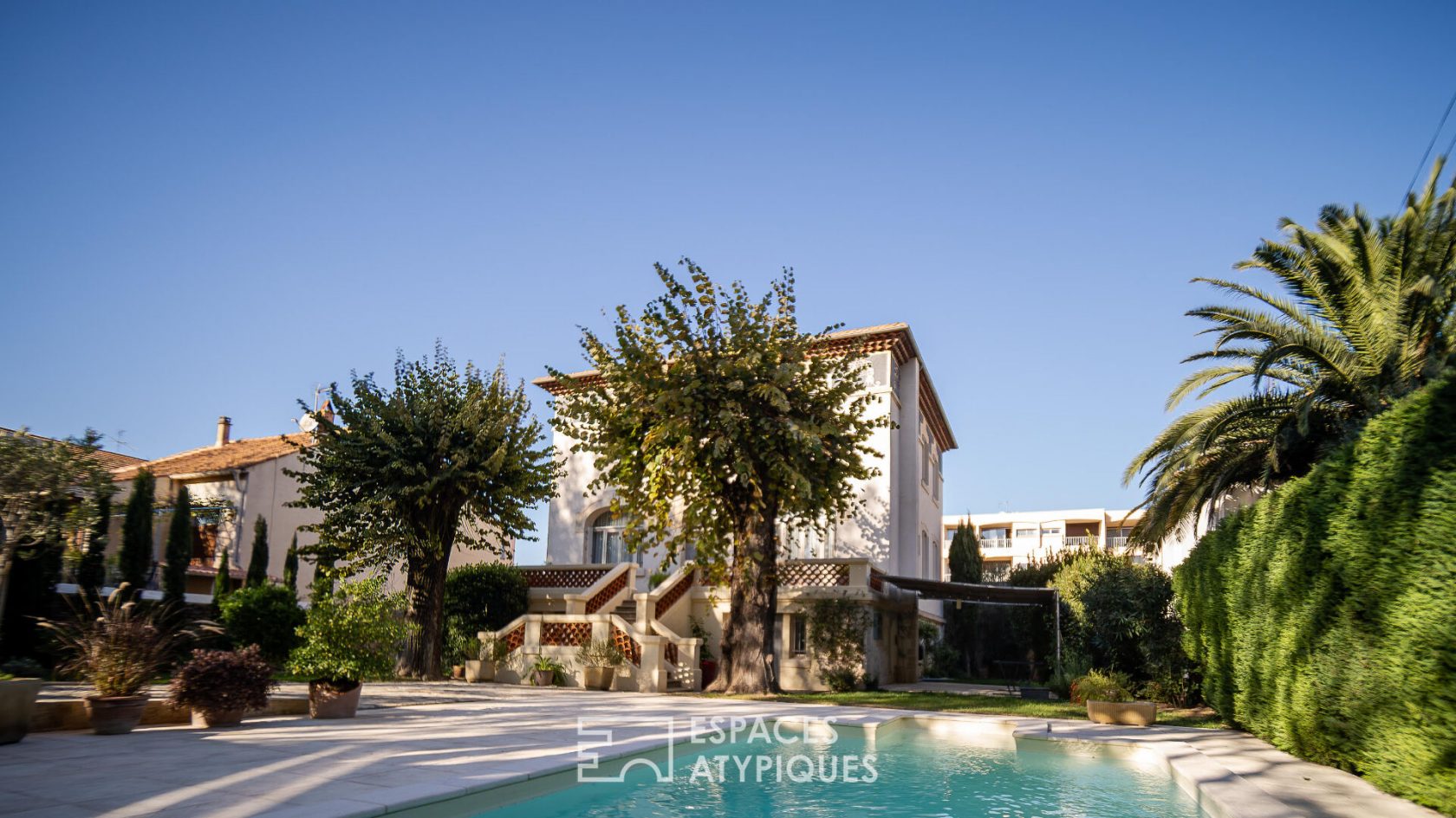 Cette propriété unique est en parfait état, chaque pièce est décorée avec goût, alliant charme de l’ancien et modernité. Son jardin avec forage, agrémenté d’une piscine, et son garage viennent compléter ce bien rare et recherché.