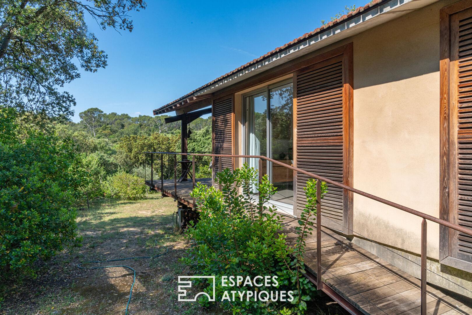 Je vous invite à découvrir l’ambiance chaleureuse de cette propriété hors du commun constituée de 2 villas d’architecte de plain-pied installées au calme absolu, dans la quiétude d’un parc privé, véritable bulle de nature, de plus de 4 000 m.