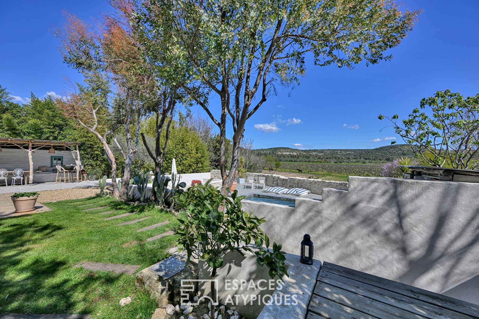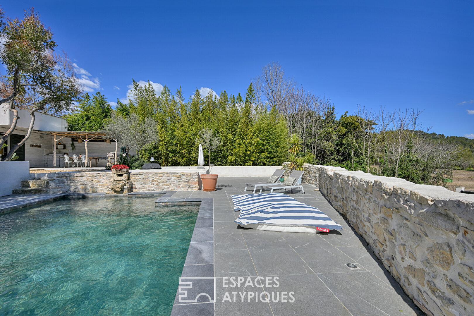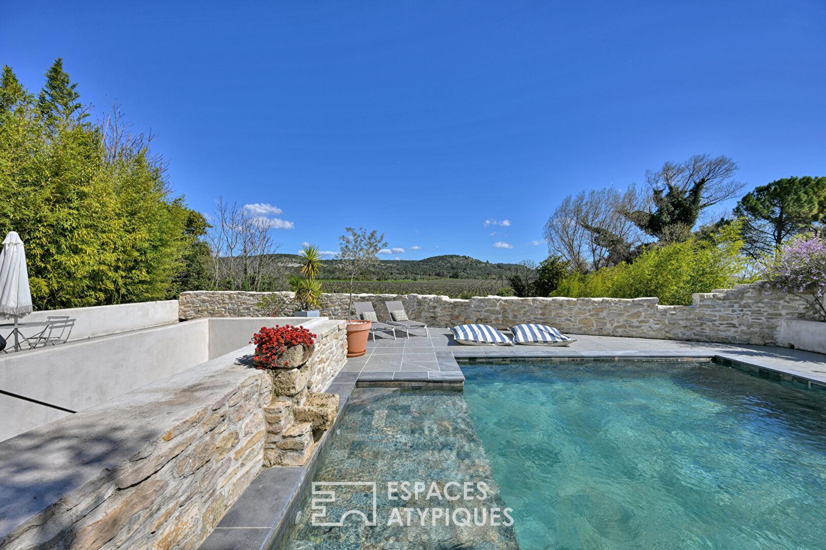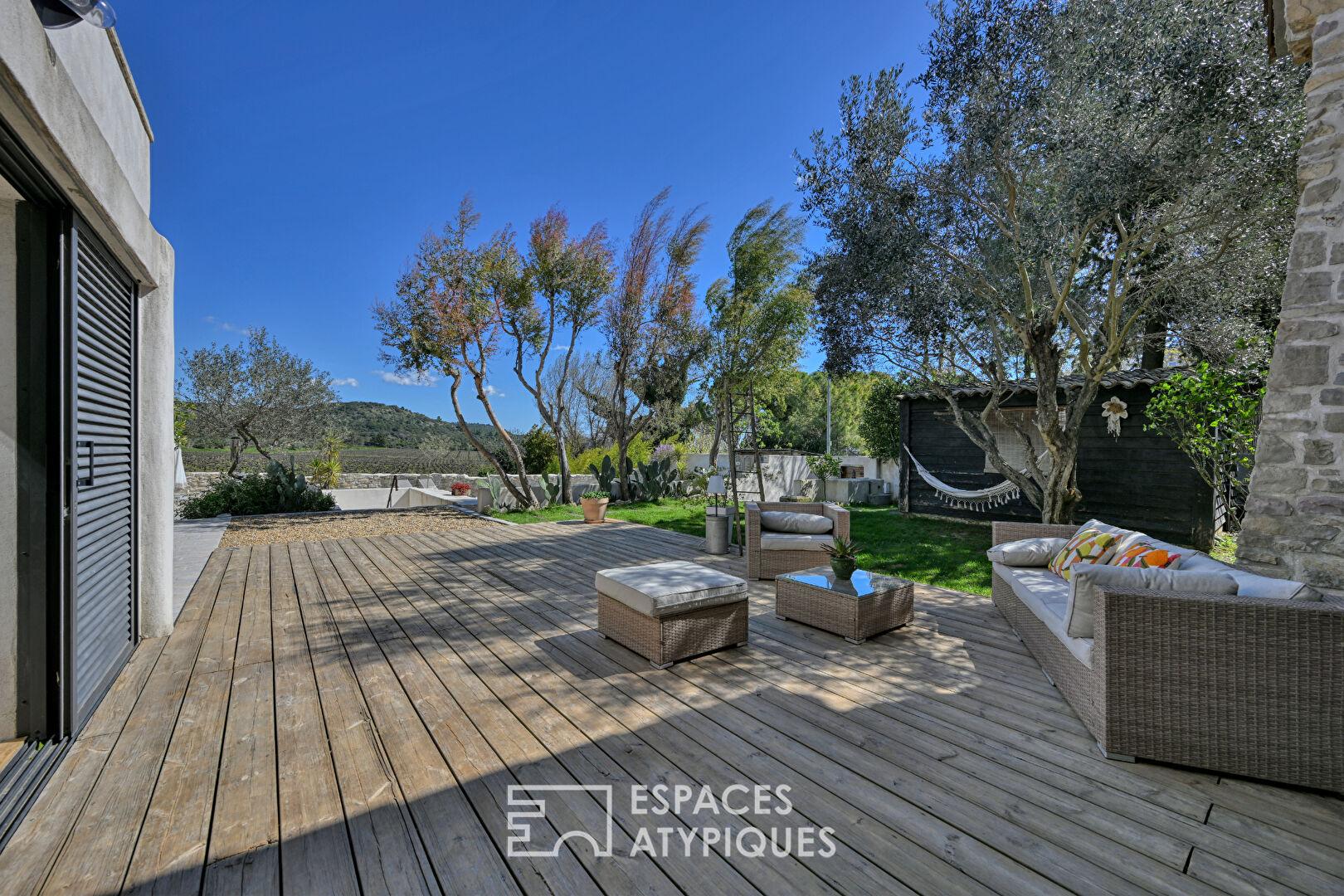 Au coeur de la Vaunage, à quelques minutes du village de Calvisson, cette ancienne grange en pierre a été entièrement rénovée et développe 180 m², où le charme de l’ancien se mêle à une modernité raffinée. Nichée sur un terrain paysager, elle dévoile une piscine scintillante, une terrasse en bois accueillante et une vue imprenable sur la nature environnante. Un véritable havre de paix où chaque journée se vit comme une parenthèse enchantée.