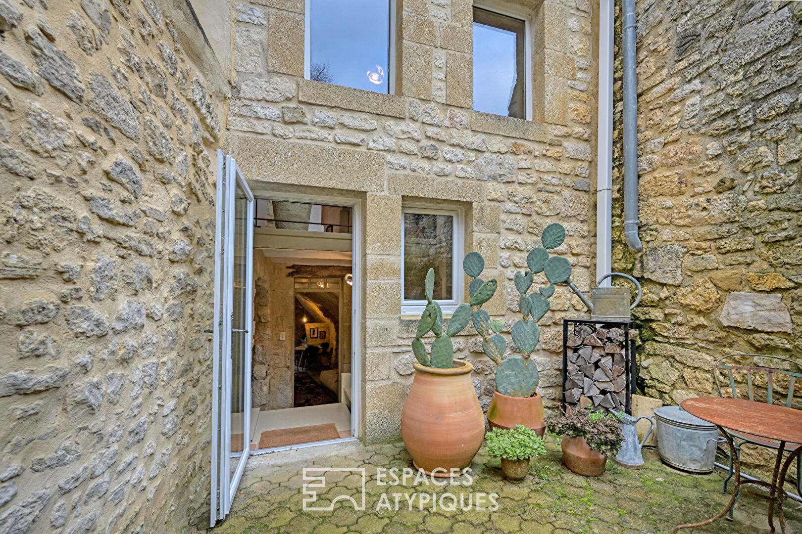 À l’extérieur, le jardin se révèle être un véritable écrin de sérénité. Son bassin d’inspiration romaine murmure un air de dolce vita, tandis qu’un coin repas et un espace ombragé invitent aux longues soirées d’été. Ici, la végétation et les pierres anciennes composent un décor en parfaite harmonie, où chaque détail semble suspendu dans le temps.