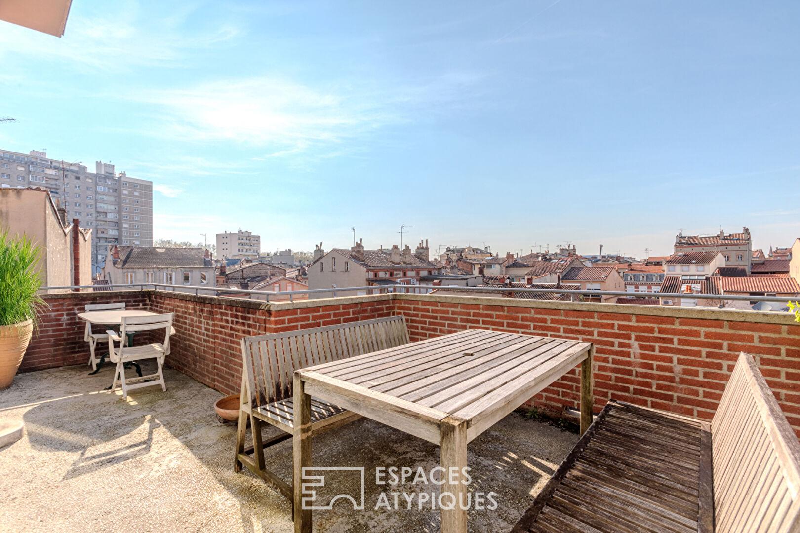 Triplex d’architecte suspendu sur les toits de Toulouse en dernier étage avec terrasses aux Châlets.