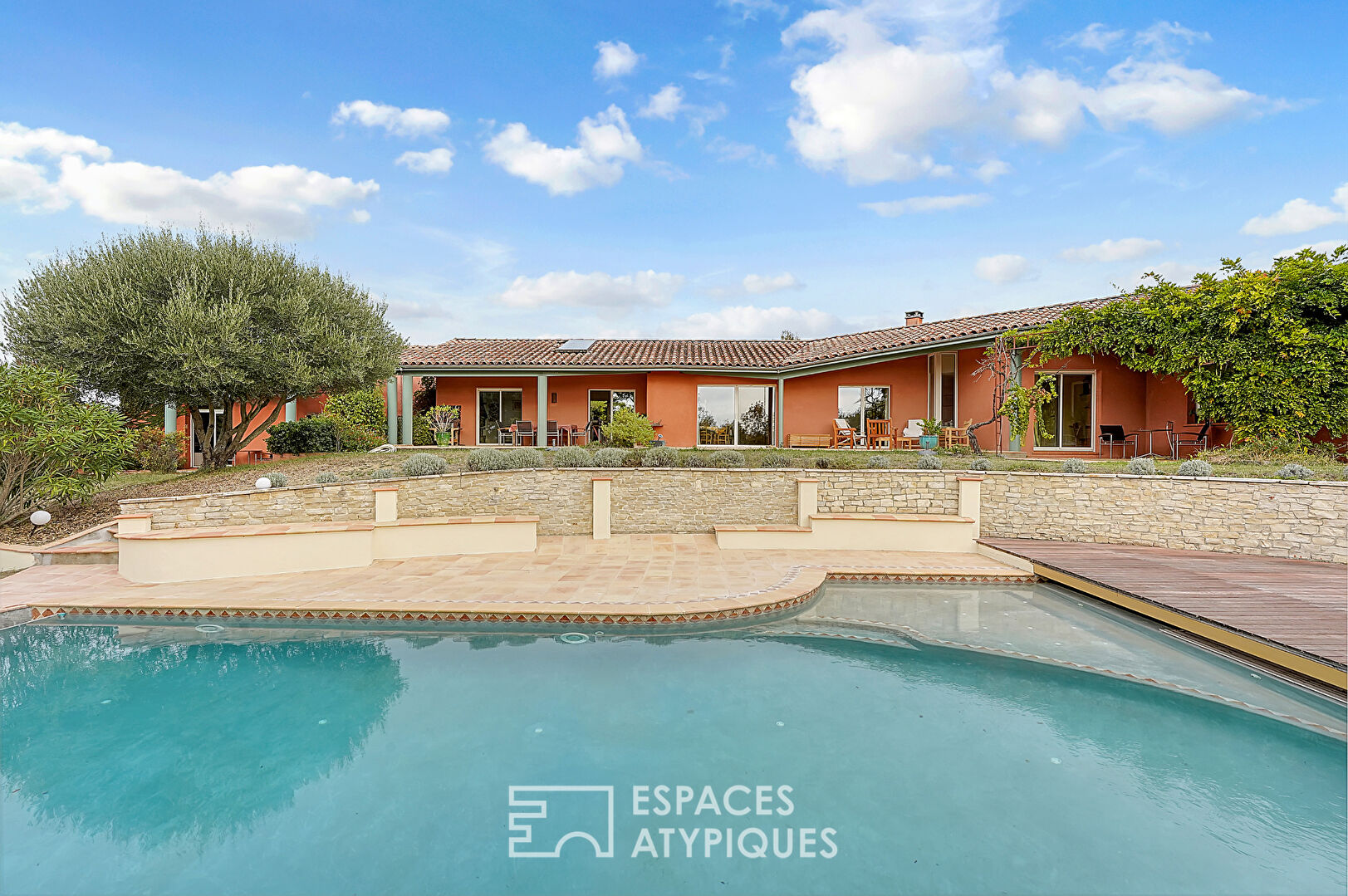 Située sur les hauteurs de Pin-Balma à 10km de Toulouse, cette maison de 199m² a été construite sur un terrain arboré de 2260m².