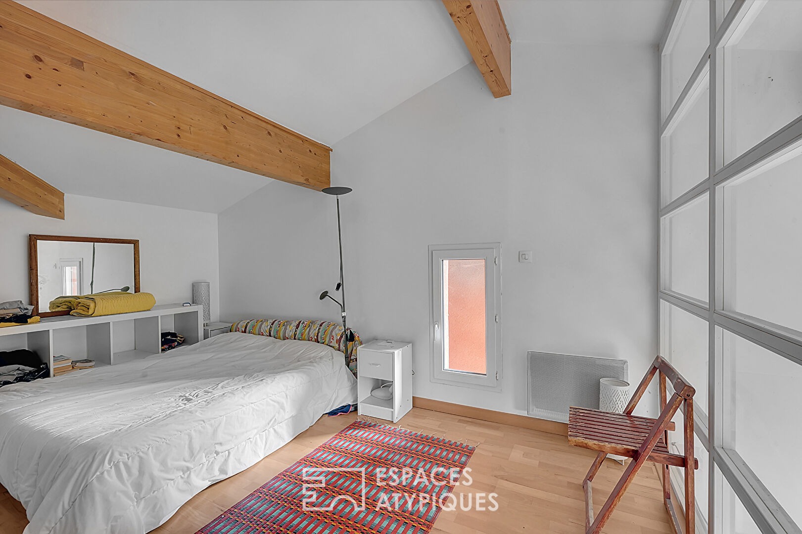 L’étage est dédié à l’espace nuit avec deux chambres de 9m² et 12m².