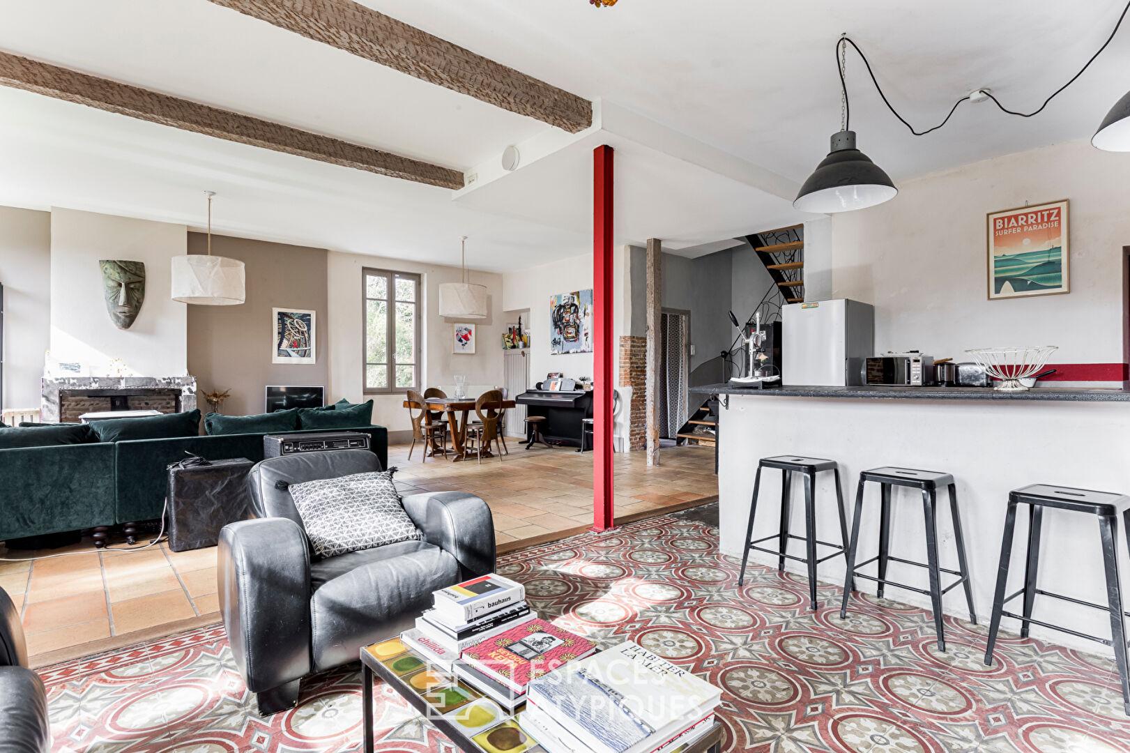 Nichée dans un cadre verdoyant, dans le secteur de Paleficat à Toulouse, cette propriété de 1850 offre un ensemble immobilier familial, composé d’une maison de maître avec jardin et piscine puis d’un gîte T3 totalement indépendant.