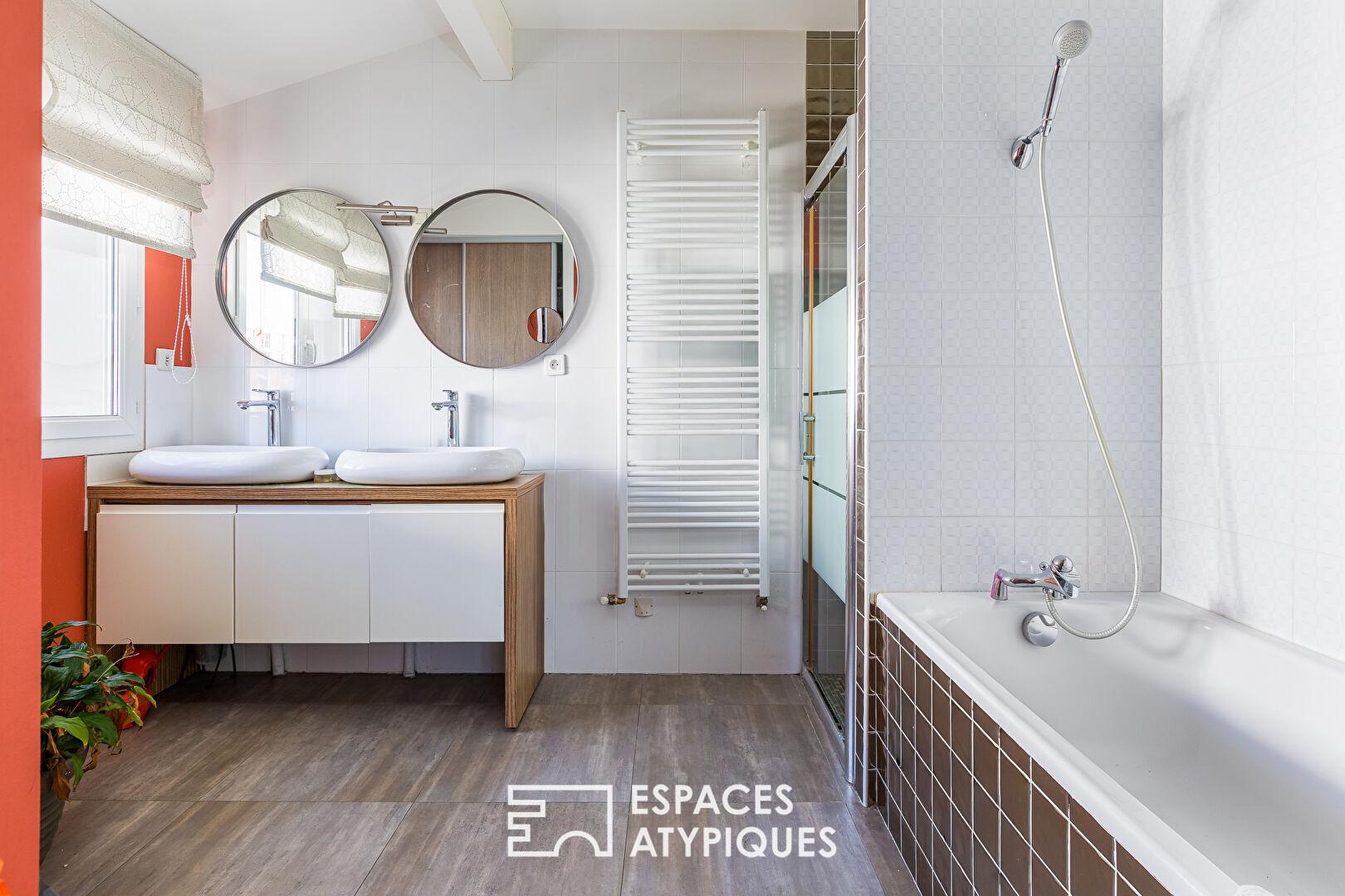 Le rez-de-chaussée accueille également une suite indépendante avec sa salle d’eau, idéale pour recevoir en toute intimité.