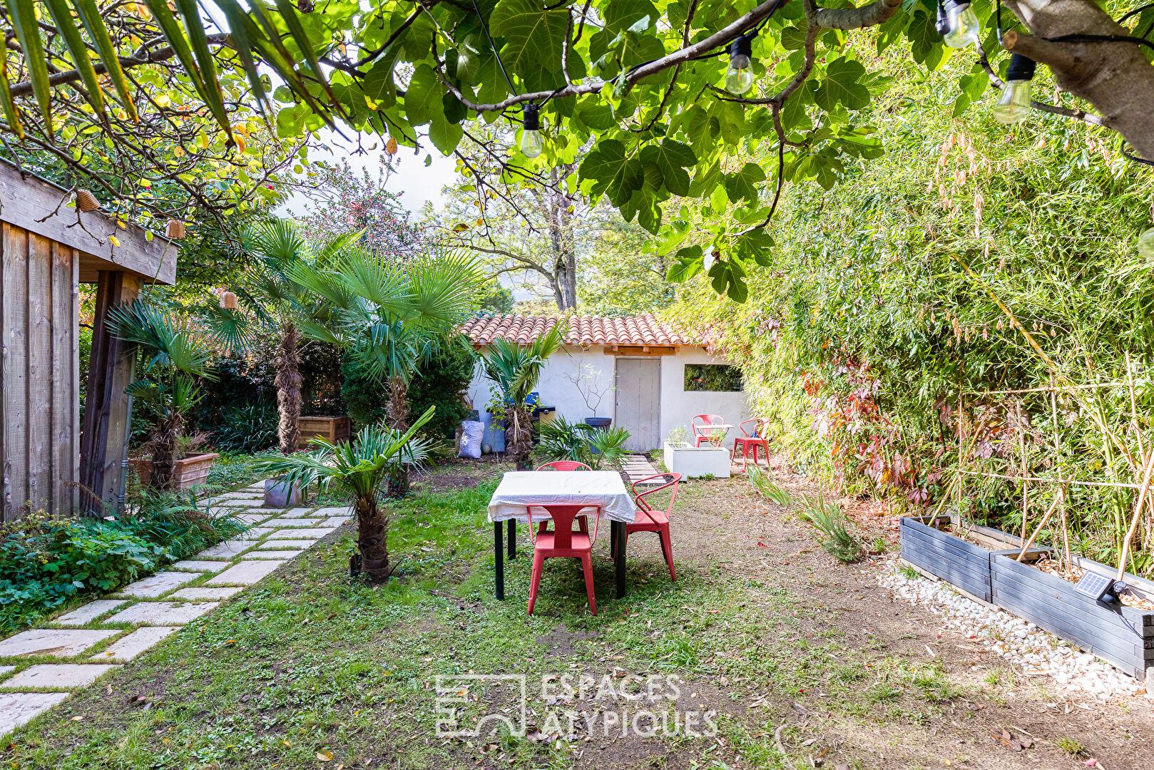 À l’extérieur, le jardin, intime et verdoyant, accueille deux dépendances contemporaines en bois. L’une, d’environ 31 m², comprend un studio indépendant avec terrasse, idéal pour recevoir ou pour un usage locatif. La seconde, de 44 m², est aménagée en espace de travail ou de loisirs, offrant un potentiel évolutif selon les besoins. L’ensemble bénéficie d’équipements haut de gamme : climatisation, borne de recharge pour véhicule électrique et toiture solaire de 10,5 kWh avec stockage virtuel.