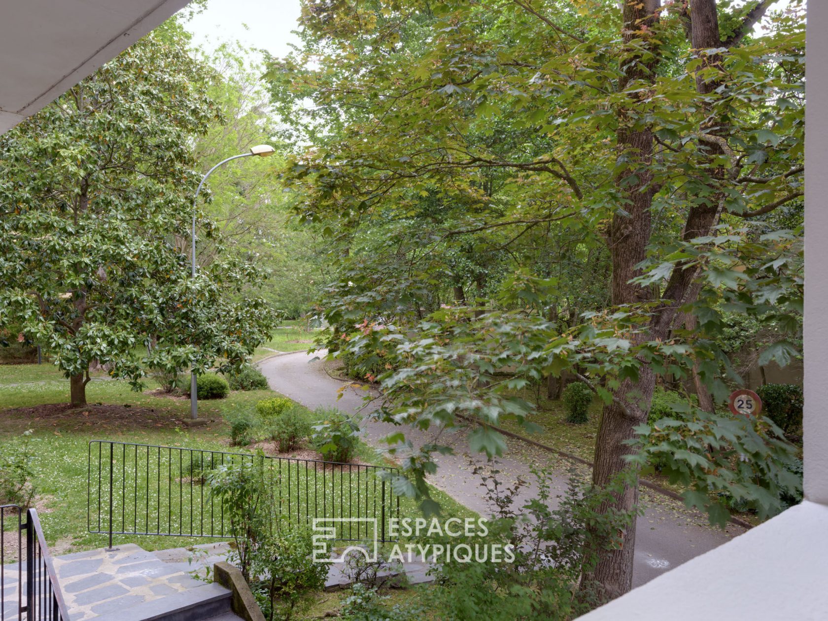 Cet appartement rénové se situe au cœur de la Côte Pavée, dans un immeuble au style « Le Corbusier » pensé par l’architecte Robert Armandary.