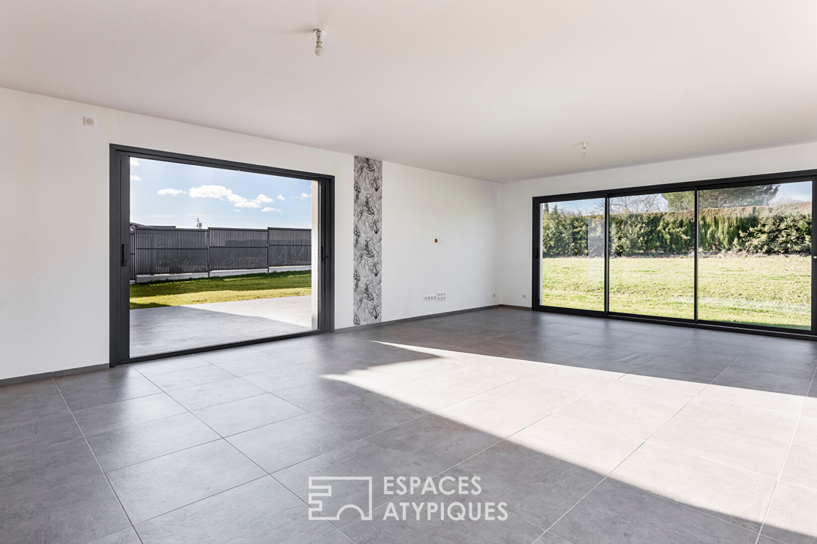 L’intérieur dévoile un agencement optimisé pour le confort d’une famille et des systèmes domotiques performants.