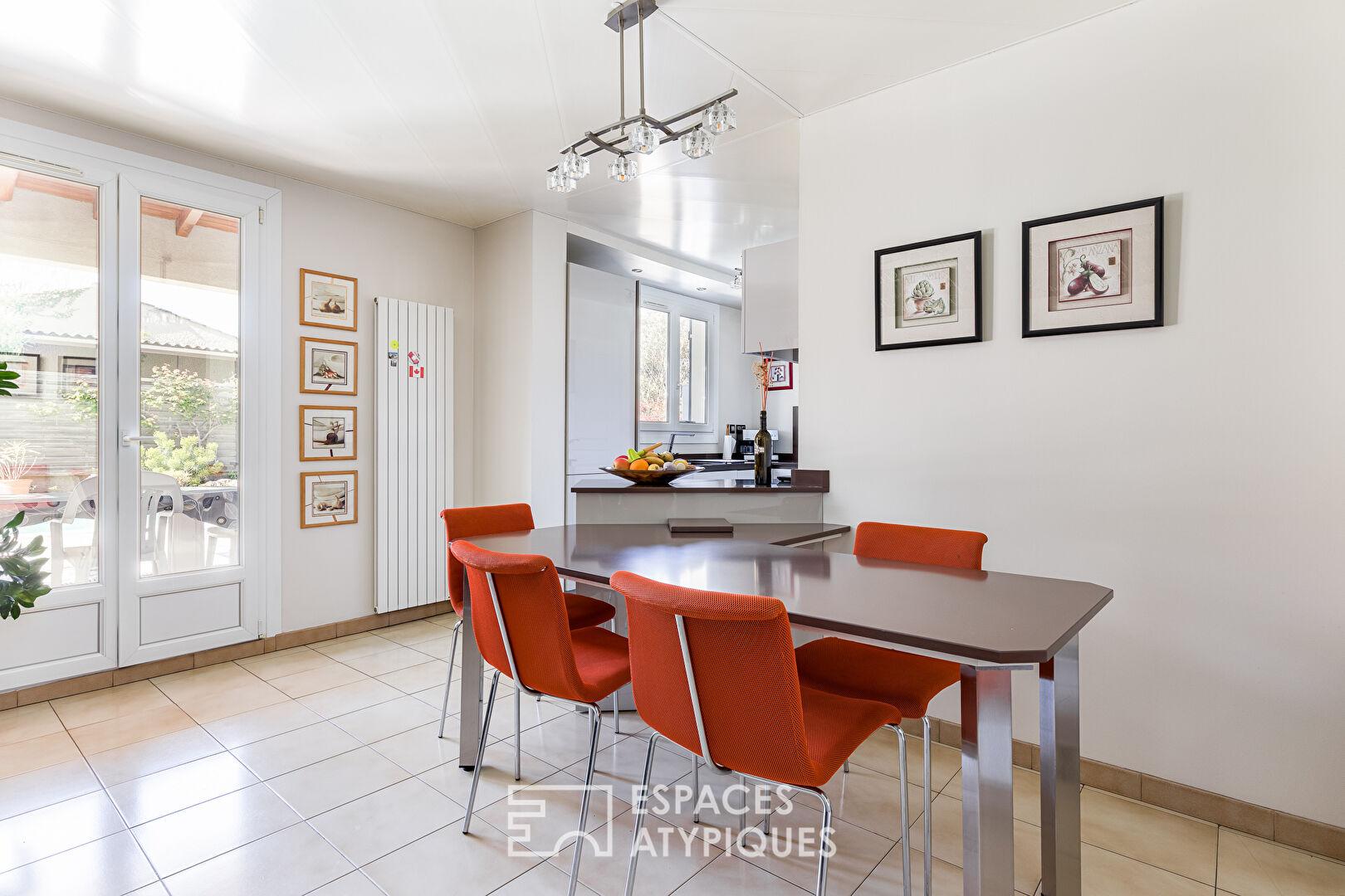 Il offre des espaces parfaitement structurés et un accès direct sur le jardin.