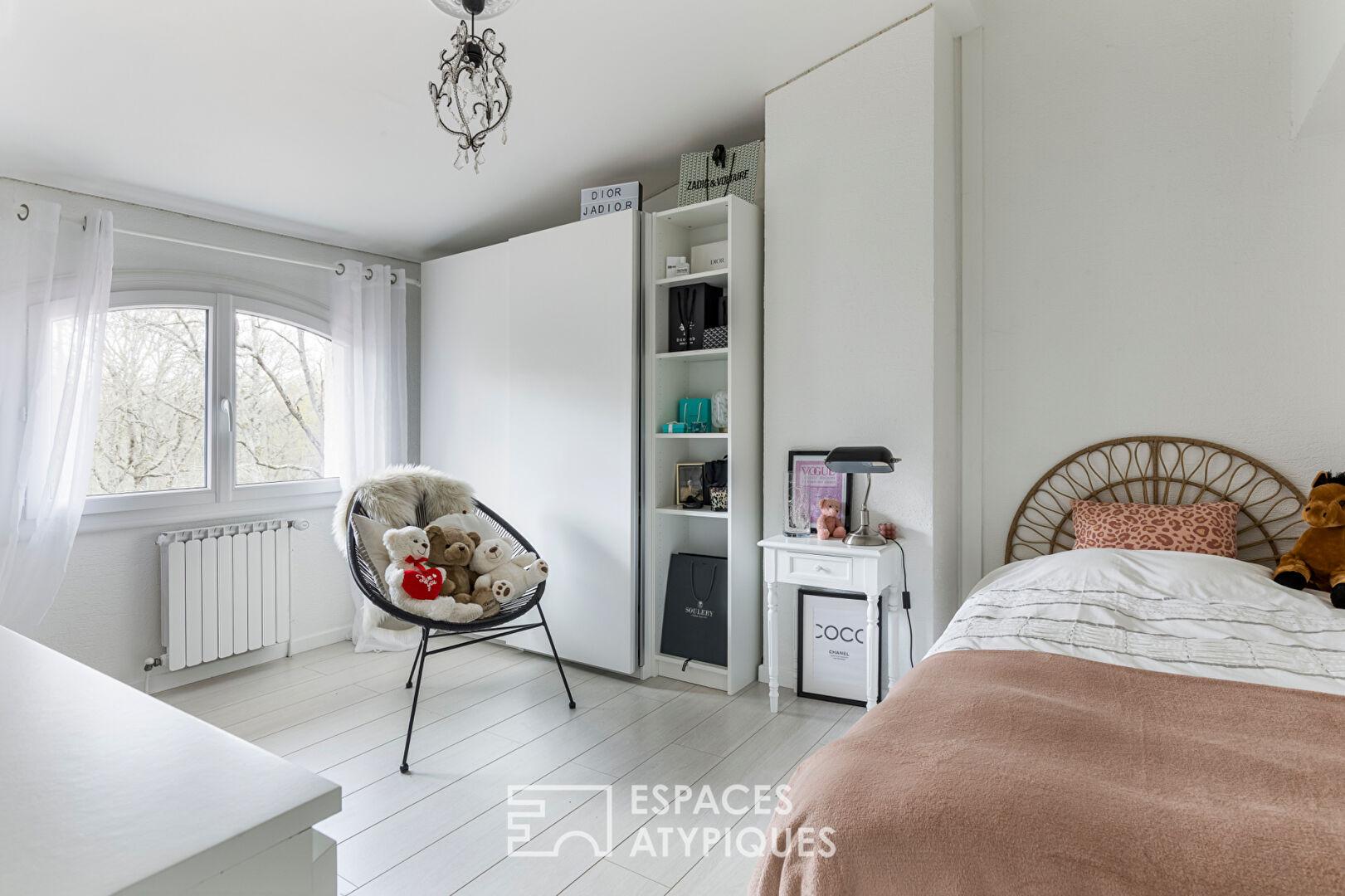 Conçue avec soin, elle se distingue par ses volumes généreux, ses belles hauteurs sous plafond et ses larges ouvertures qui inondent les espaces de lumière naturelle.
