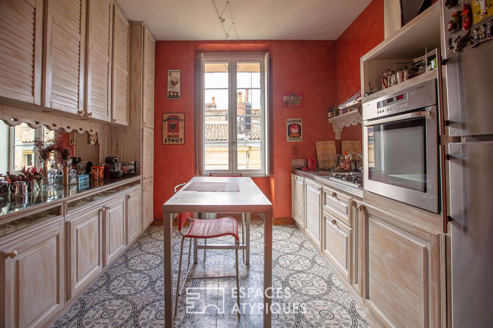 À l’étage, une troisième chambre s’ouvre sur deux terrasses de 22 et 29 m², offrant un panorama à couper le souffle sur l’église Saint-Louis. La luminosité exceptionnelle, les finitions soignées et la proximité de tous les commerces font de cet appartement un bien rare, véritable reflet de l’esprit recherché des Chartrons.