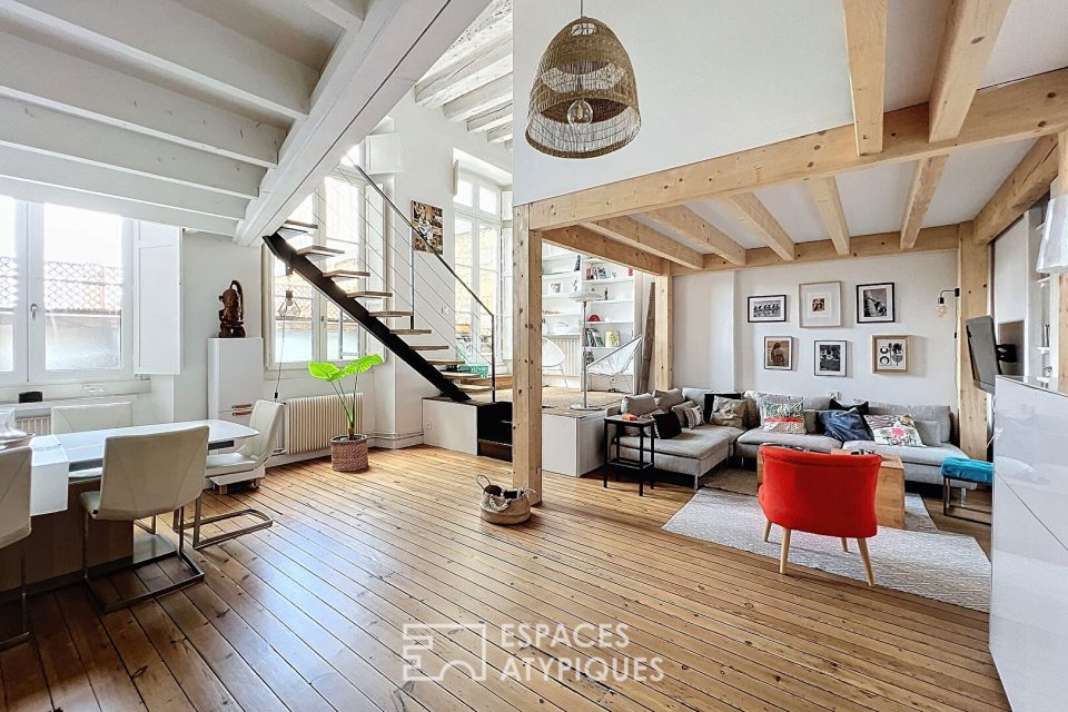 Idéalement situé entre les Quinconces et les Chartrons, face au Jardin Public, ce duplex au 2ème et dernier étage offre une surface de 123 m² au sol (98 m² loi Carrez). Il prend place au sein d’un immeuble en pierre de taille, remarquable par son emplacement en angle.