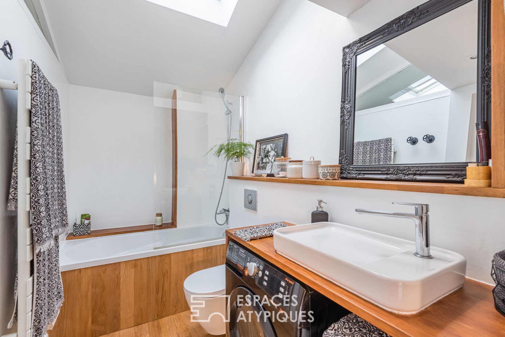 Au coeur des Chartrons, tout proche de la rue Notre Dame, cet appartement de 42m2 carrez et 62m2 au sol, prend place au 3eme et dernier étage d’un bel immeuble en pierre.