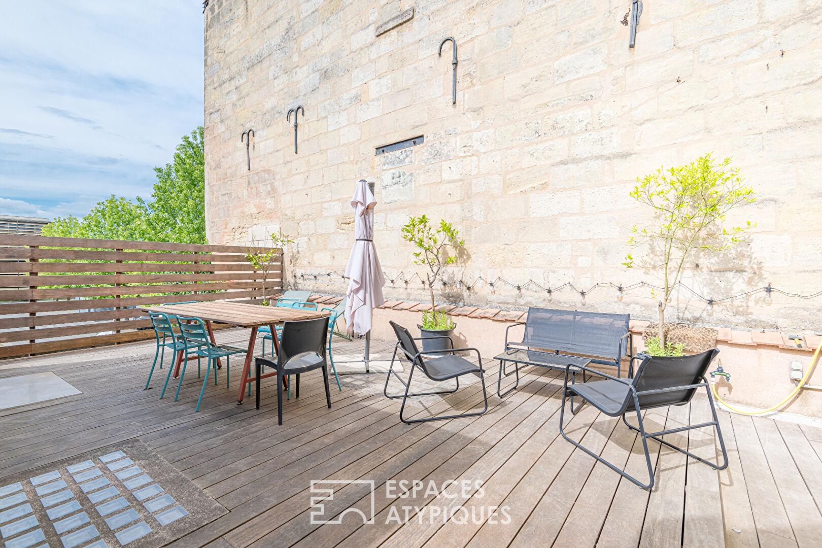 Situé sur les quais des Chartrons, à quelques pas du marché des quais, cet appartement de 60 m² Carrez jouit d’une terrasse d’environ 60 m², exposée plein ouest, idéale pour profiter des couchers de soleil.