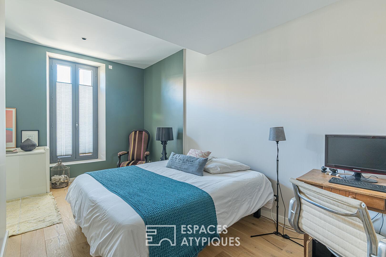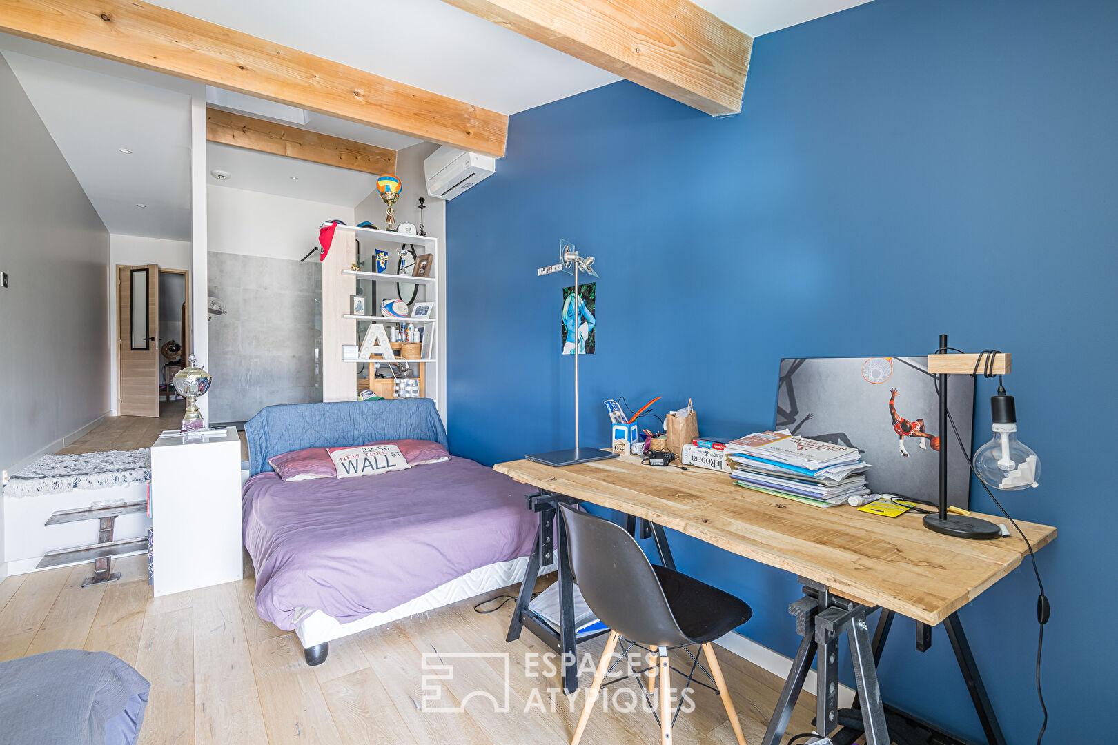 L’ensemble de la maison propose ainsi quatre chambres traitées en suites, avec des rangements intégrés et des pièces d’eau privatives, un véritable atout pour une vie de famille ou un projet d’accueil. La création d’une cinquième chambre reste envisageable.