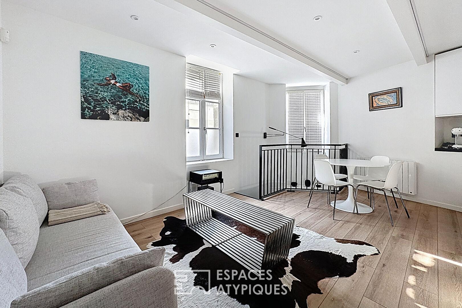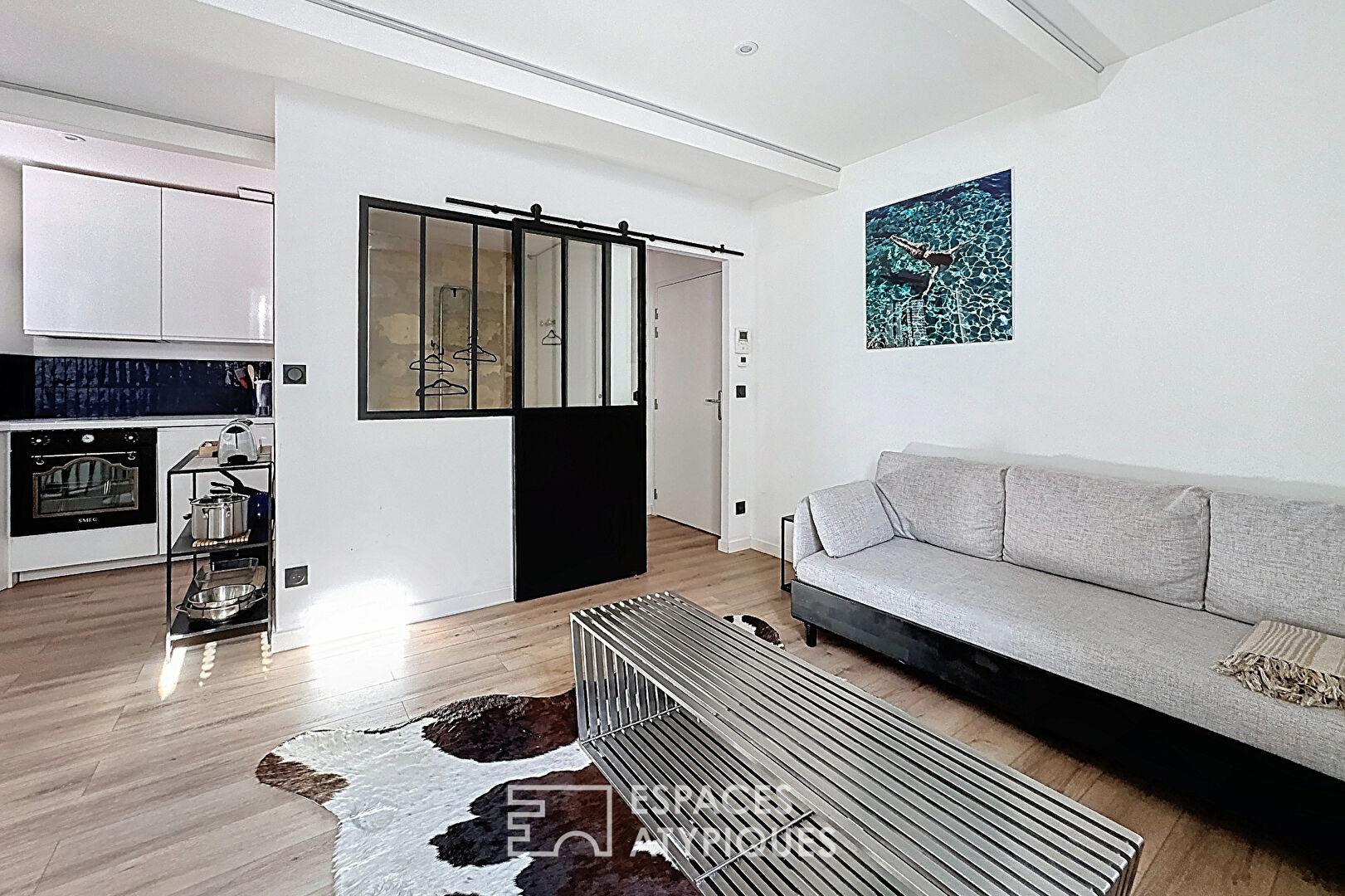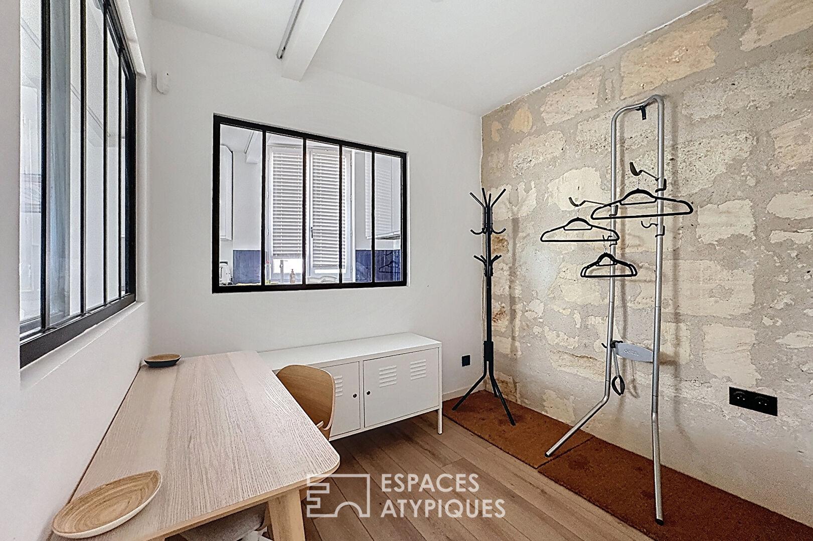 Situé au coeur du quartier prisé de Quartier Judaïque à Bordeaux, cet appartement de caractère de 46 m² se niche au sein d’une petite copropriété entièrement rénovée. Son usage mixte (hôtelier, commercial et habitation) permet la location courte durée tout au long de l’année.