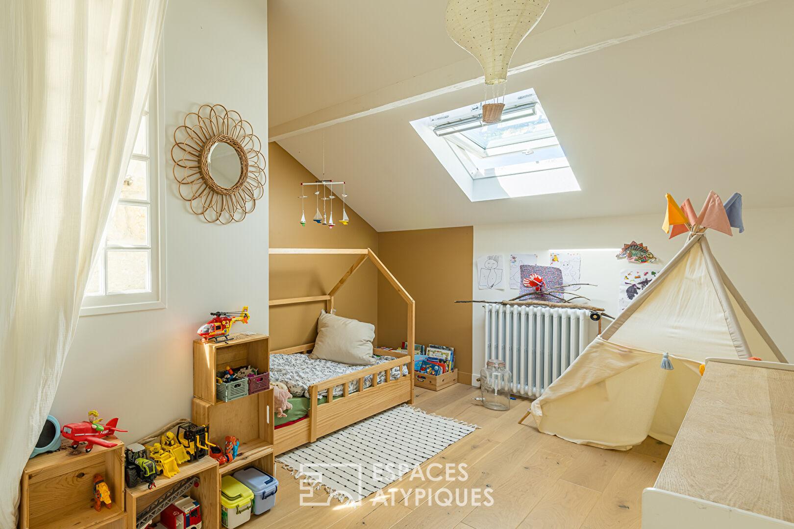 Une suite parentale avec sa salle d’eau ainsi qu’un bureau viennent compléter ce niveau, permettant une organisation fluide entre espaces de vie et espace nuit.
