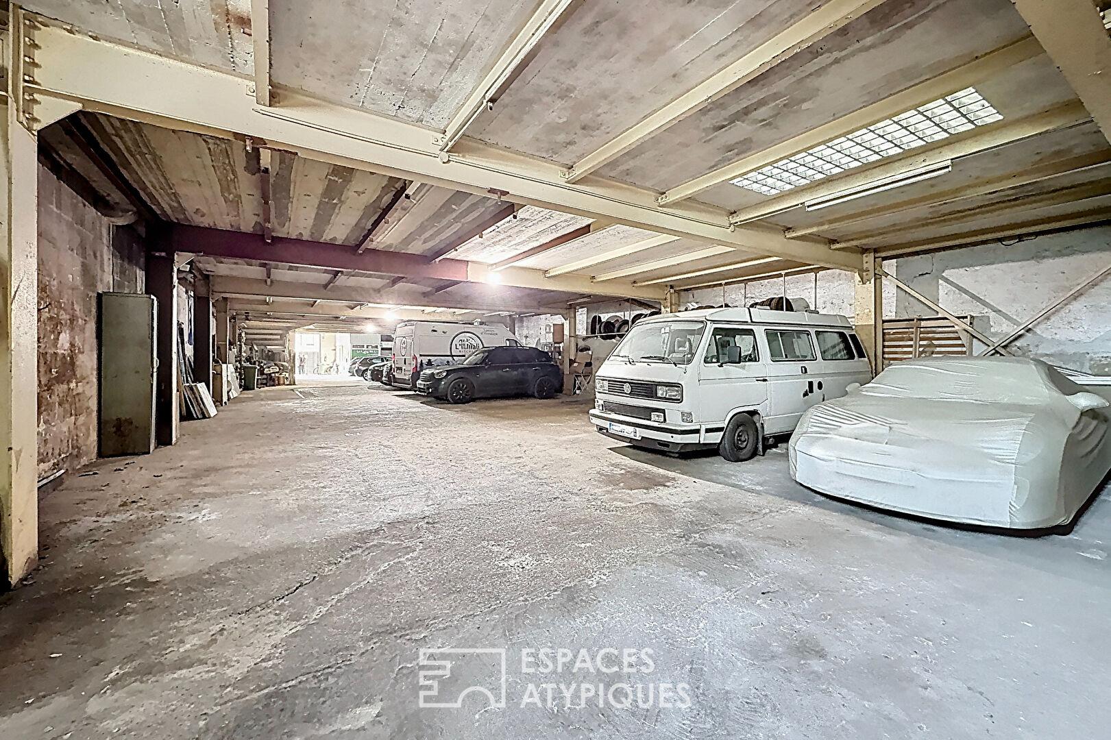 Actuellement configuré pour accueillir une dizaine de véhicules, ce plateau brut permet toutes les libertés architecturales : verrières de style industriel, vastes suites, patios intérieurs ou jardins d’hiver.