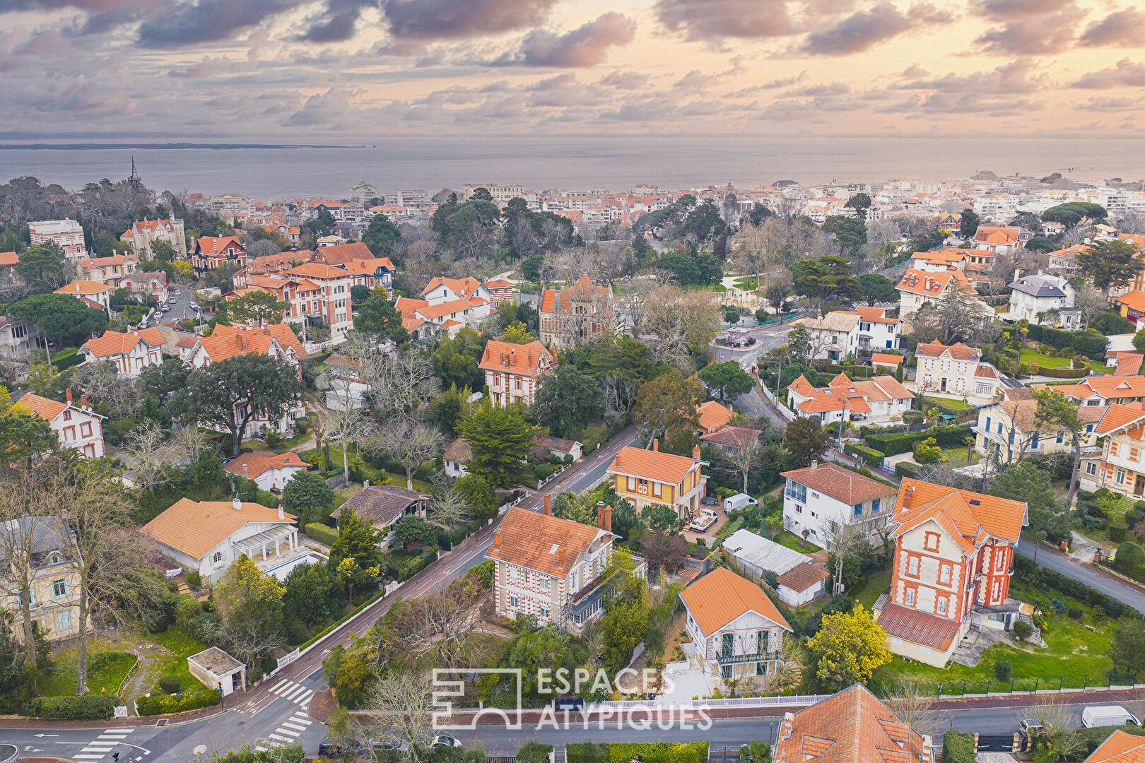 À l’abri des regards, au coeur du très recherché quartier de la Ville d’Hiver à Arcachon, cette Villa historique édifiée à la fin du XIXe siècle incarne toute l’élégance architecturale de cette époque emblématique. Idéalement située à quelques pas du Parc Mauresque et à proximité immédiate du centre-ville et de ses commerces, elle offre un cadre de vie privilégié où patrimoine et douceur de vivre se rencontrent.