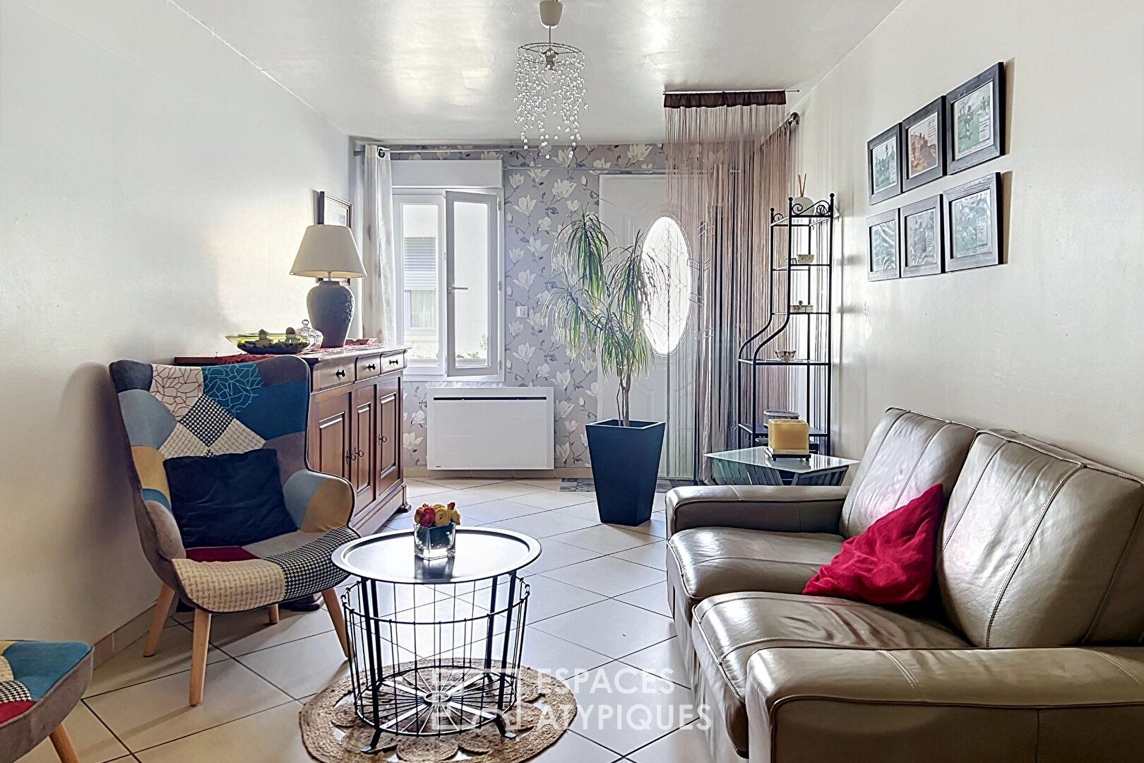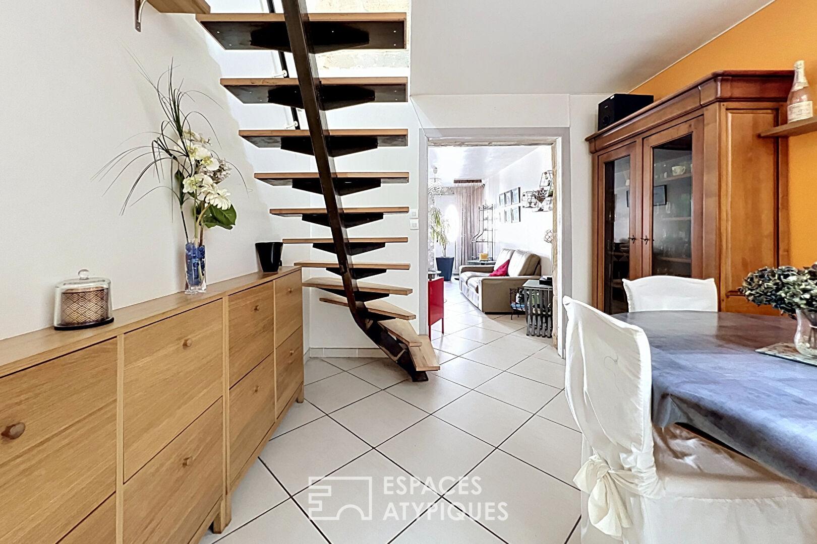 Une maison de ville fonctionnelle et atypique, idéalement située à proximité des commerces et des transports.