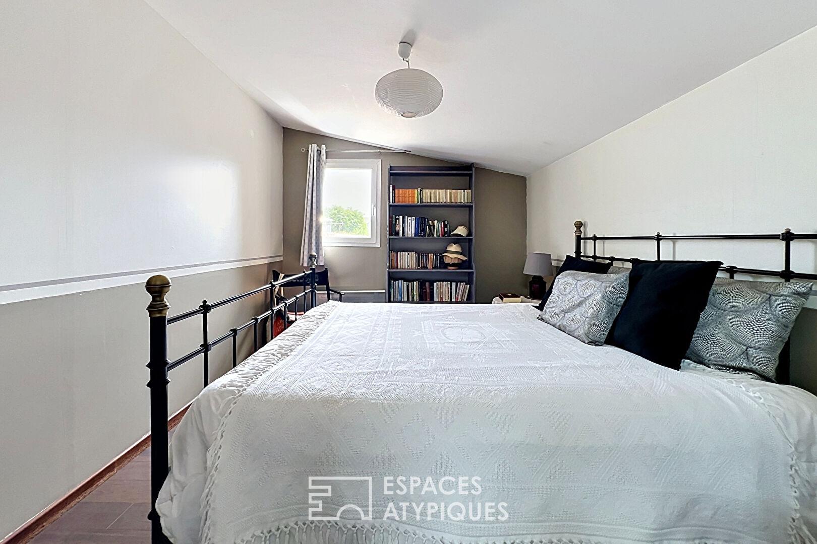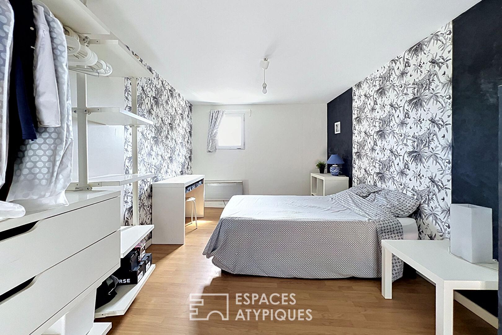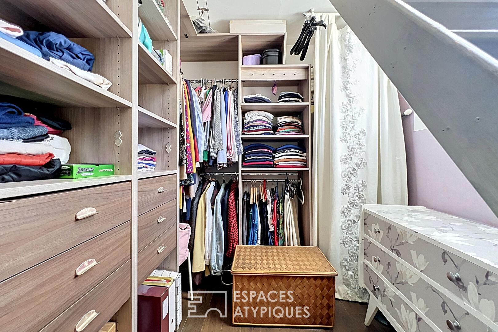 Le dernier niveau accueille une seconde chambre, plus spacieuse, accessible depuis le dressing.