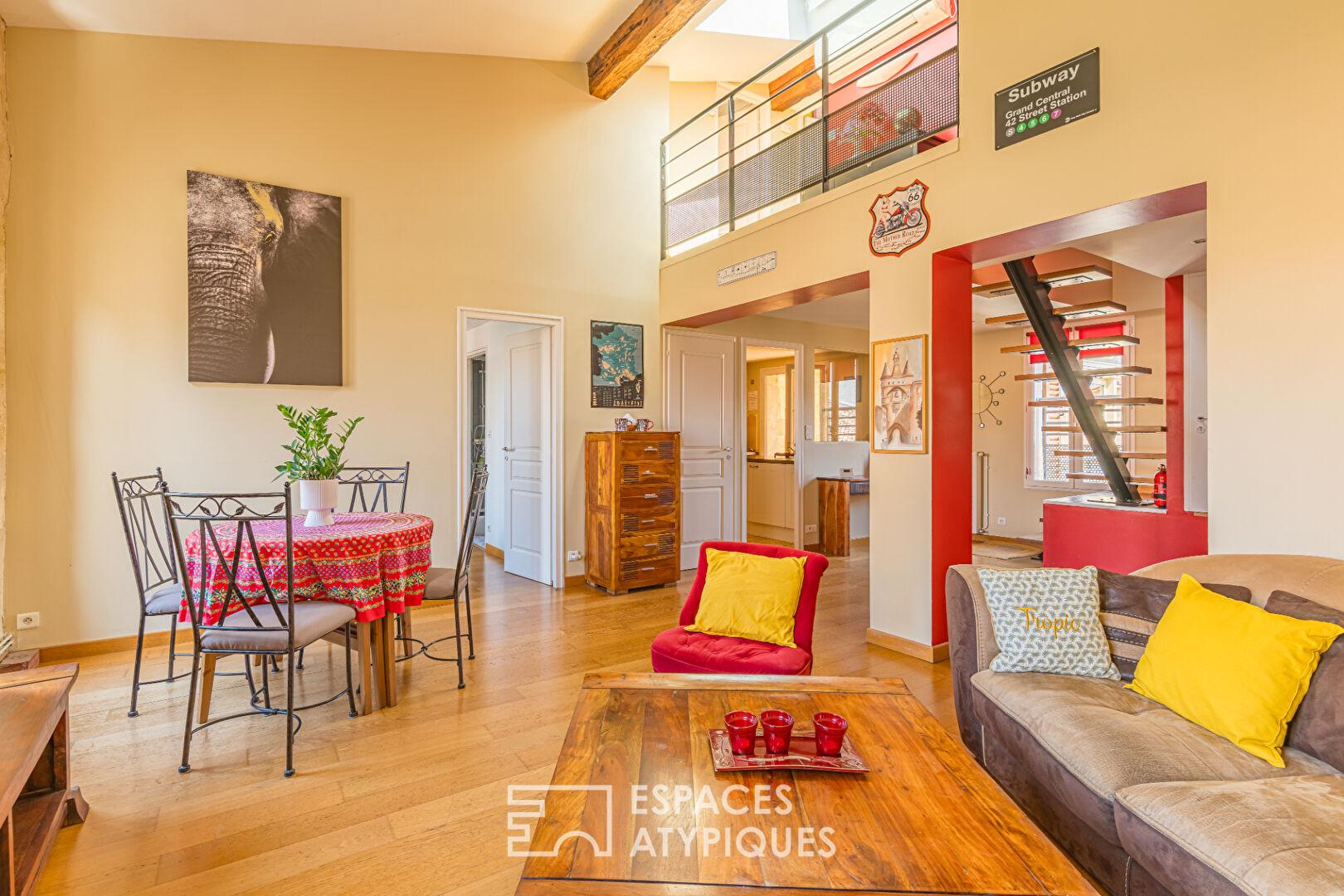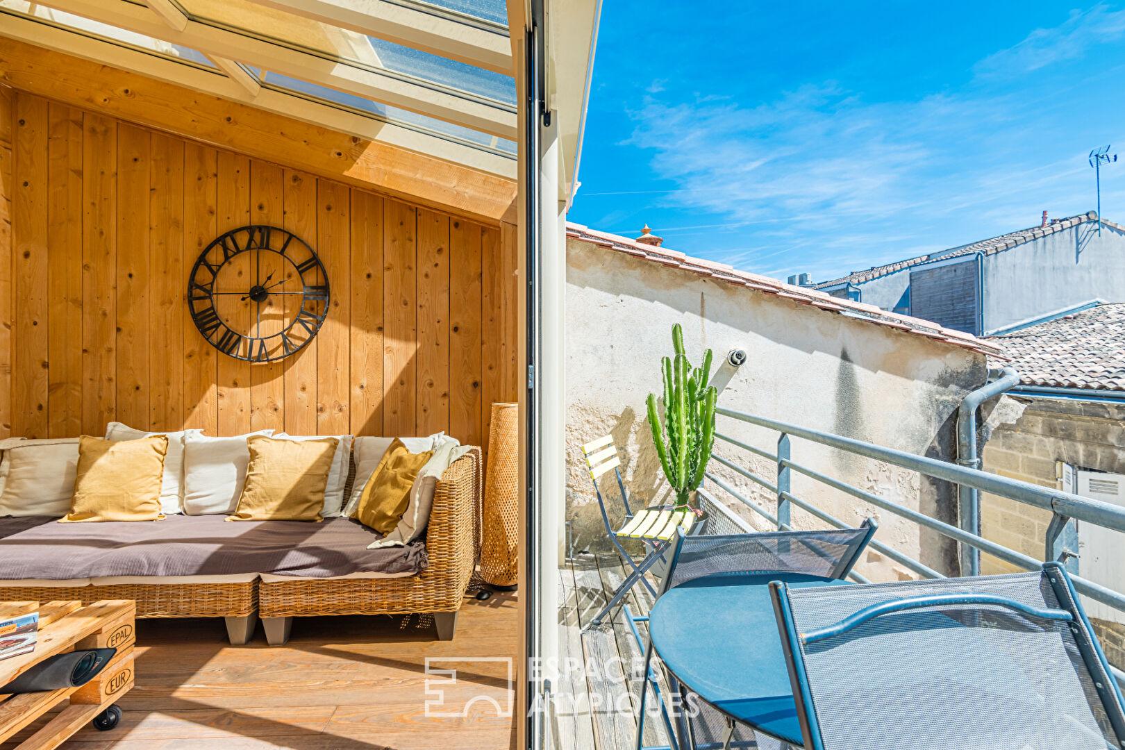 Situé au calme, dans le quartier très prisé des Chartrons, au deuxième et dernier étage d’une petite copropriété aux faibles charges, cet appartement en duplex développe une surface de 113,87 m² au sol, dont 97,14 m² Carrez, et bénéficie d’une belle véranda ainsi que d’un balcon filant donnant sur les toits de Bordeaux, sans vis-à-vis.