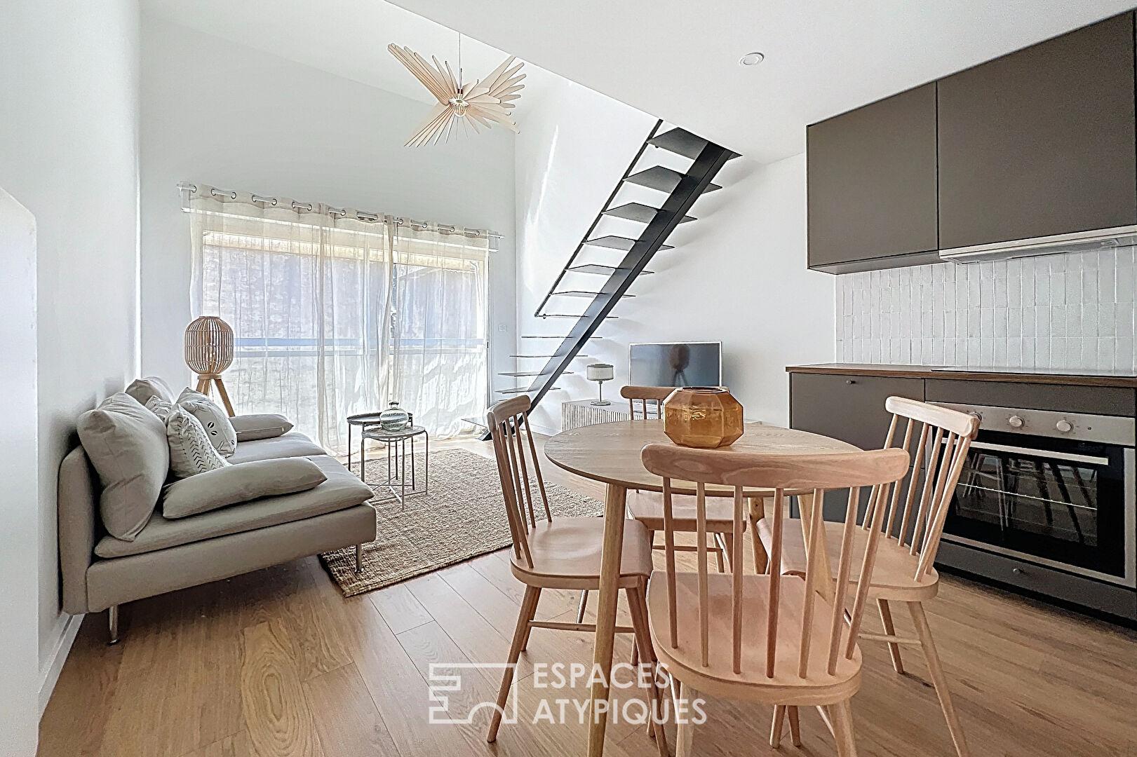 Situé dans le quartier recherché des Chartrons – Saint Martial à Bordeaux, cet appartement duplex de standing développe 52m² habitables.
