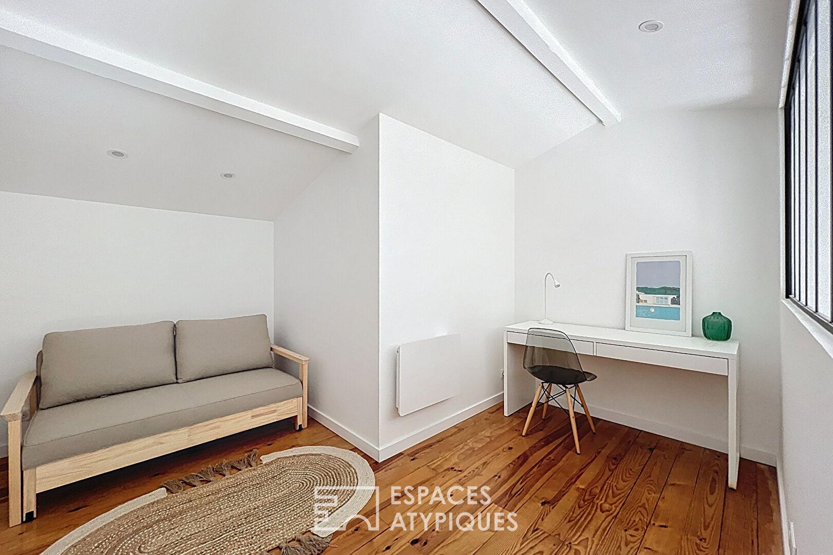 Entièrement rénové avec des prestations de qualité et bénéficiant de garanties décennales, ce bien immobilier séduit par son style contemporain, ses volumes et sa belle hauteur sous plafond.