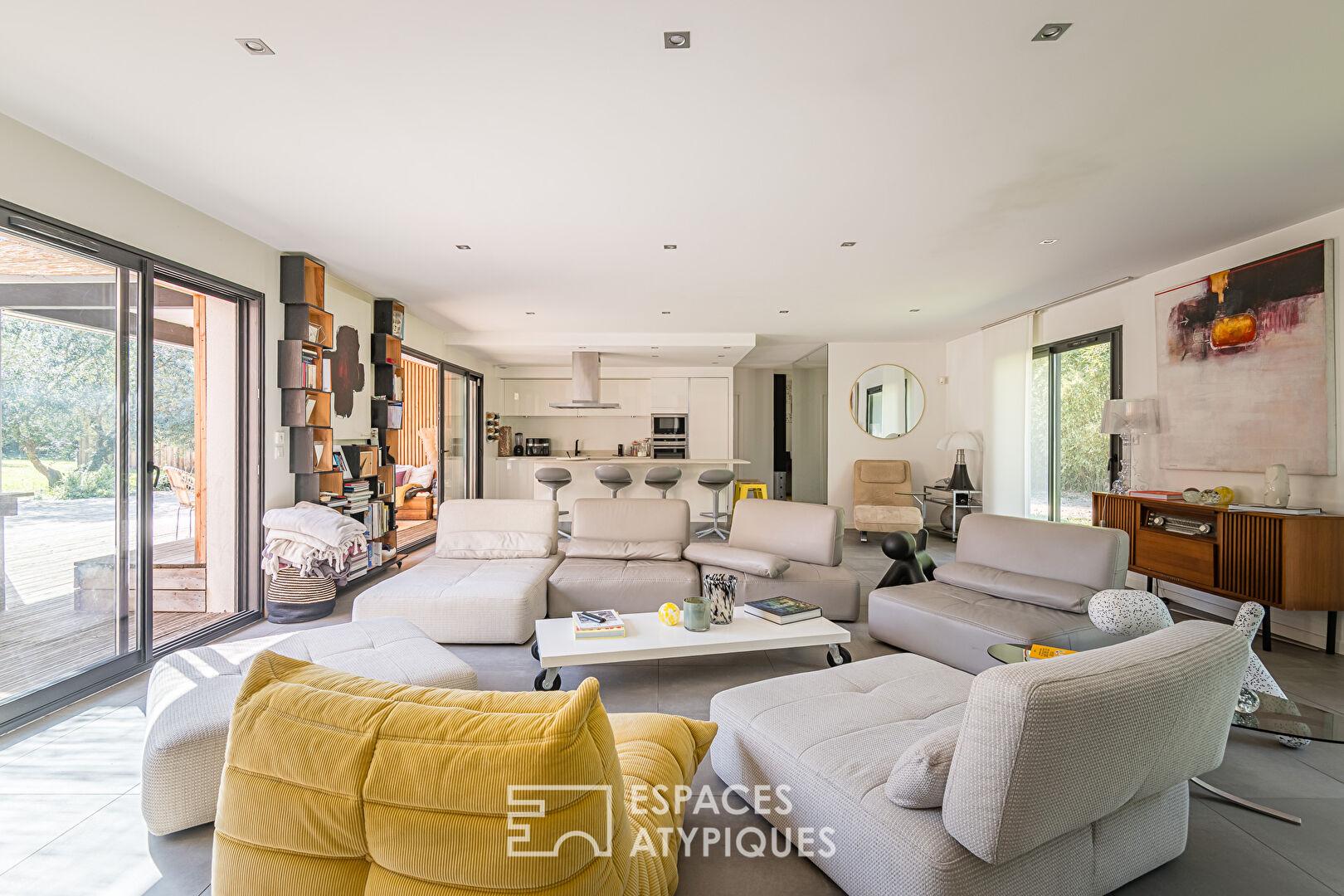 Architecture contemporaine, qualité de construction et vie de plain-pied définissent cette propriété singulière, fidèle à l’esprit de l’immobilier atypique et de prestige. Un lieu inspirant, pensé pour une vie très agréable au coeur d’un environnement naturel.