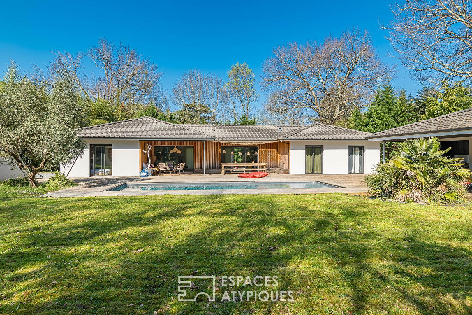 Maison contemporaine de plain pied avec piscine