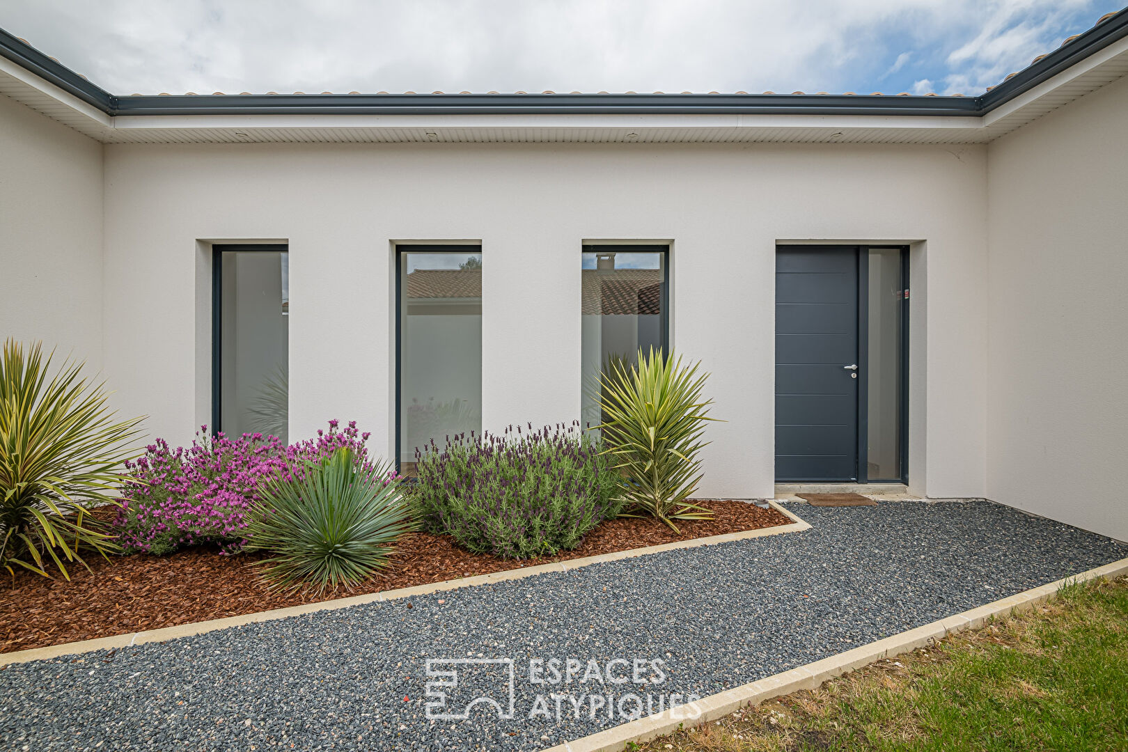 Située dans un quartier paisible, à seulement 5 minutes des commerces de la commune de Tresses, cette ravissante maison de plain-pied a été construite en 2022.